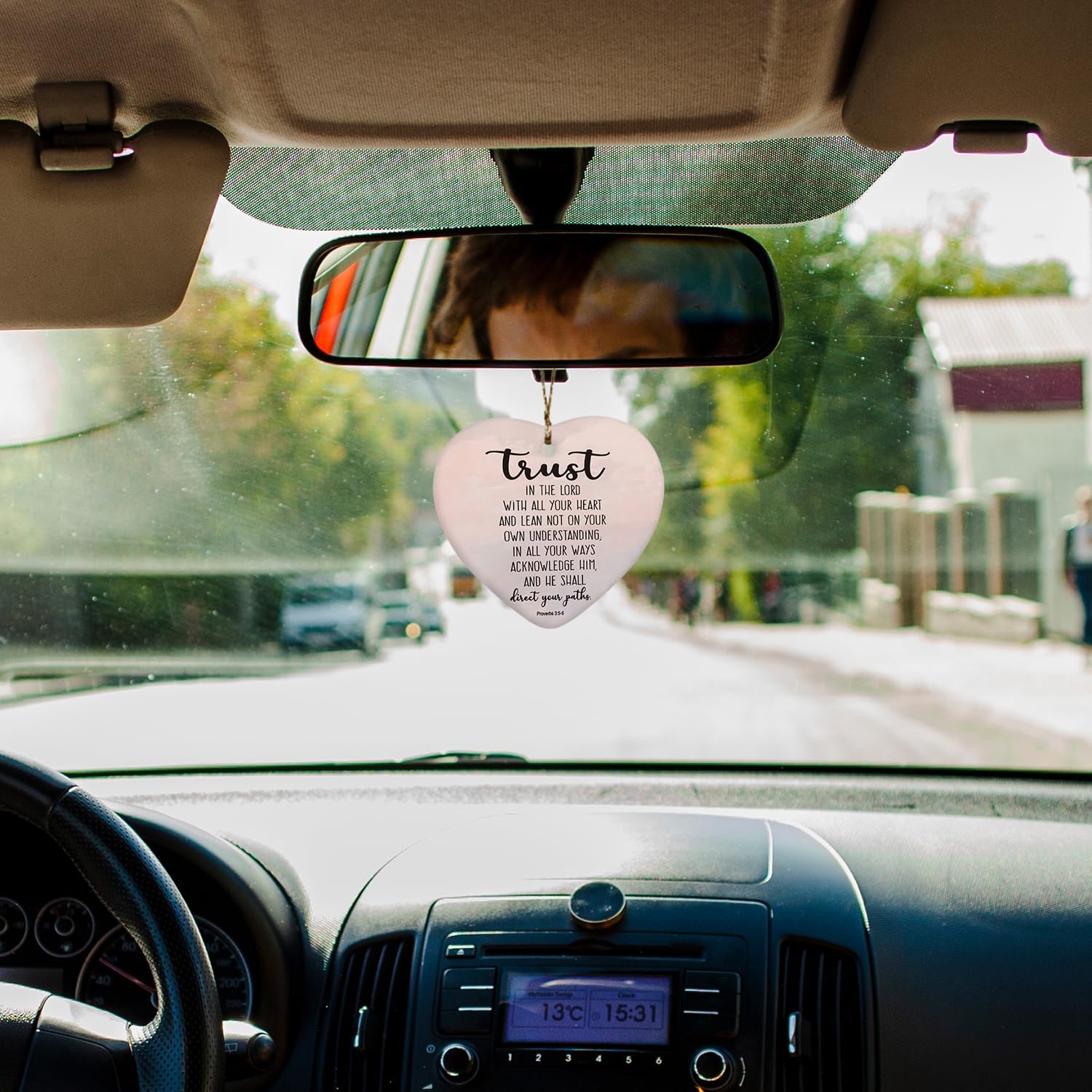 Christian Ornaments, Trust in The Lord with All Your Heart Pink Scripture Religious Ceramic Ornament Heart Keepsake Decorations, Christian Gifts for Women