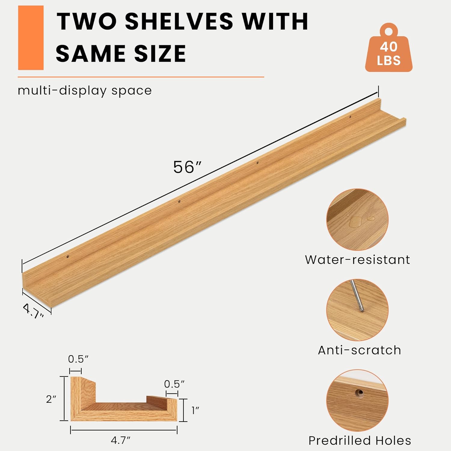 - Picture ledge Shelf for Walls: If you have dozens of pictures but don't know how to display them, Heimlove picture ledge shelves(especially large size) for walls are perfect! With our hanging shelves, store and display different types and sizes of photo frames in one place. The ledge in front of the wall shelves could prevent your precious items from falling off.