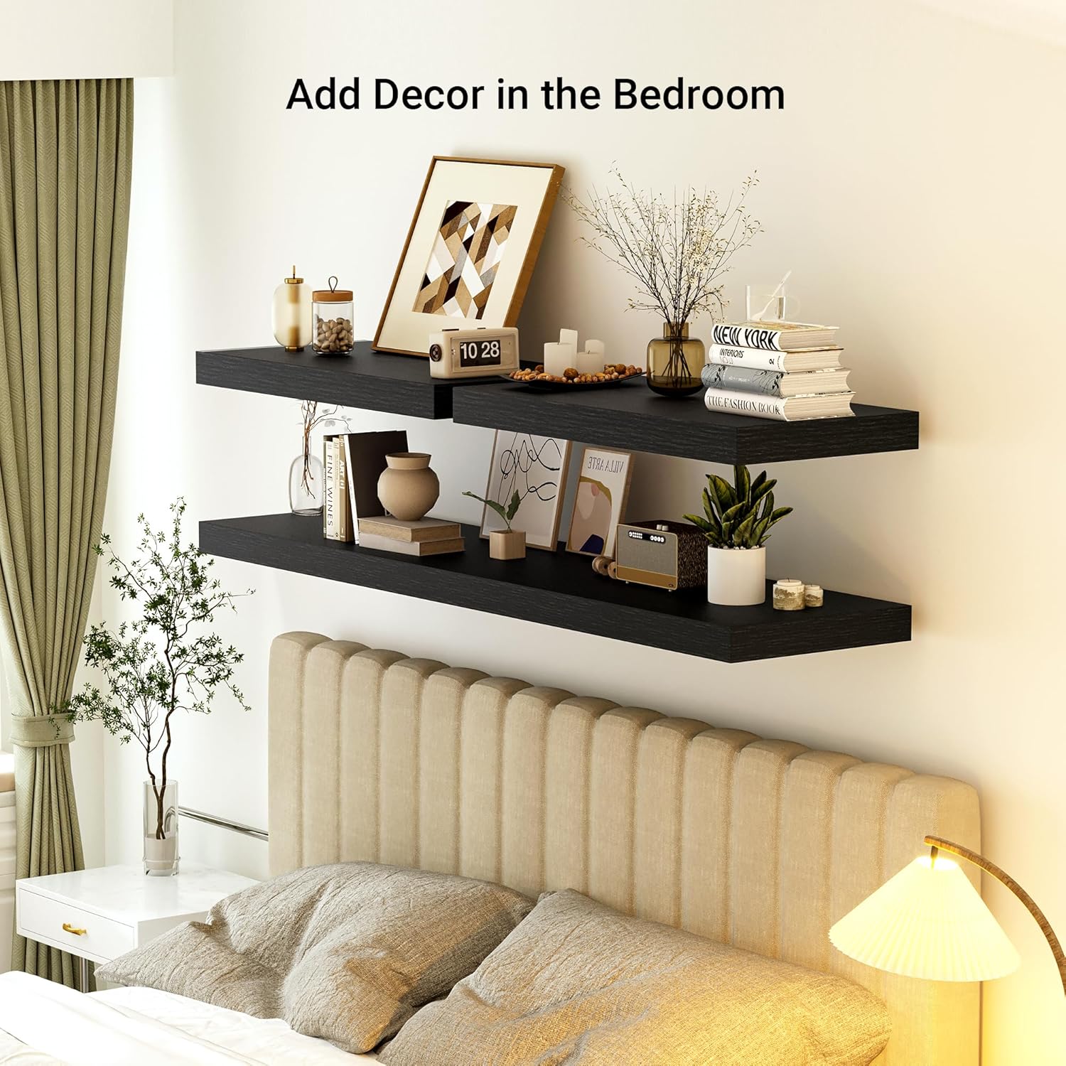 Heimlove 12" Deep Floating Shelves, 36 x 12 Inch Wall Mounted Long Floating Shelf with Invisible Brackets, for Home Decor, Bedroom, Kitchen, Living Room, Bathroom - 1 Pack, Black