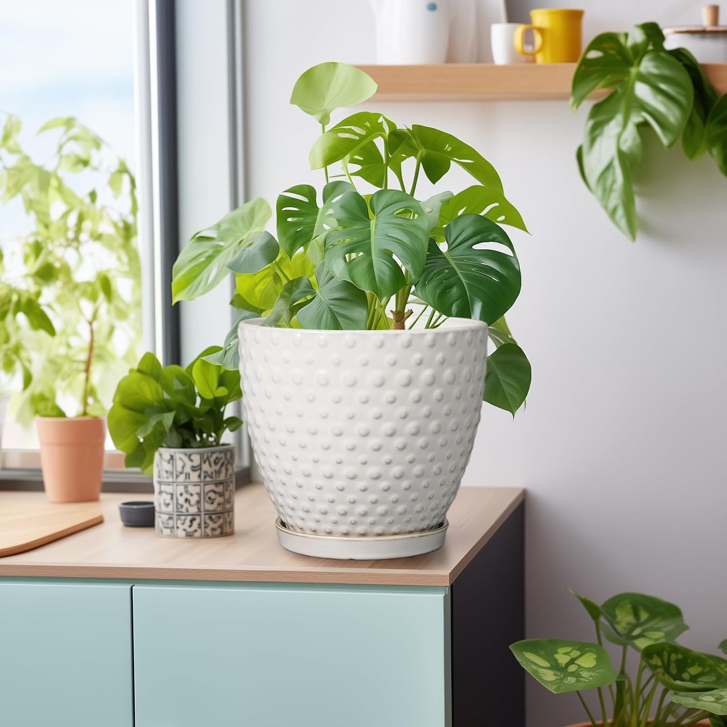 - Mid-Century Modern Style: This 8 inch plant pot is made of durable ceramic, it is not only sturdy, but also easy to maintain and clean. With embossed bubble dots of varying sizes on the surface, it adds an artistic touch to your space, showing off your unique taste and style