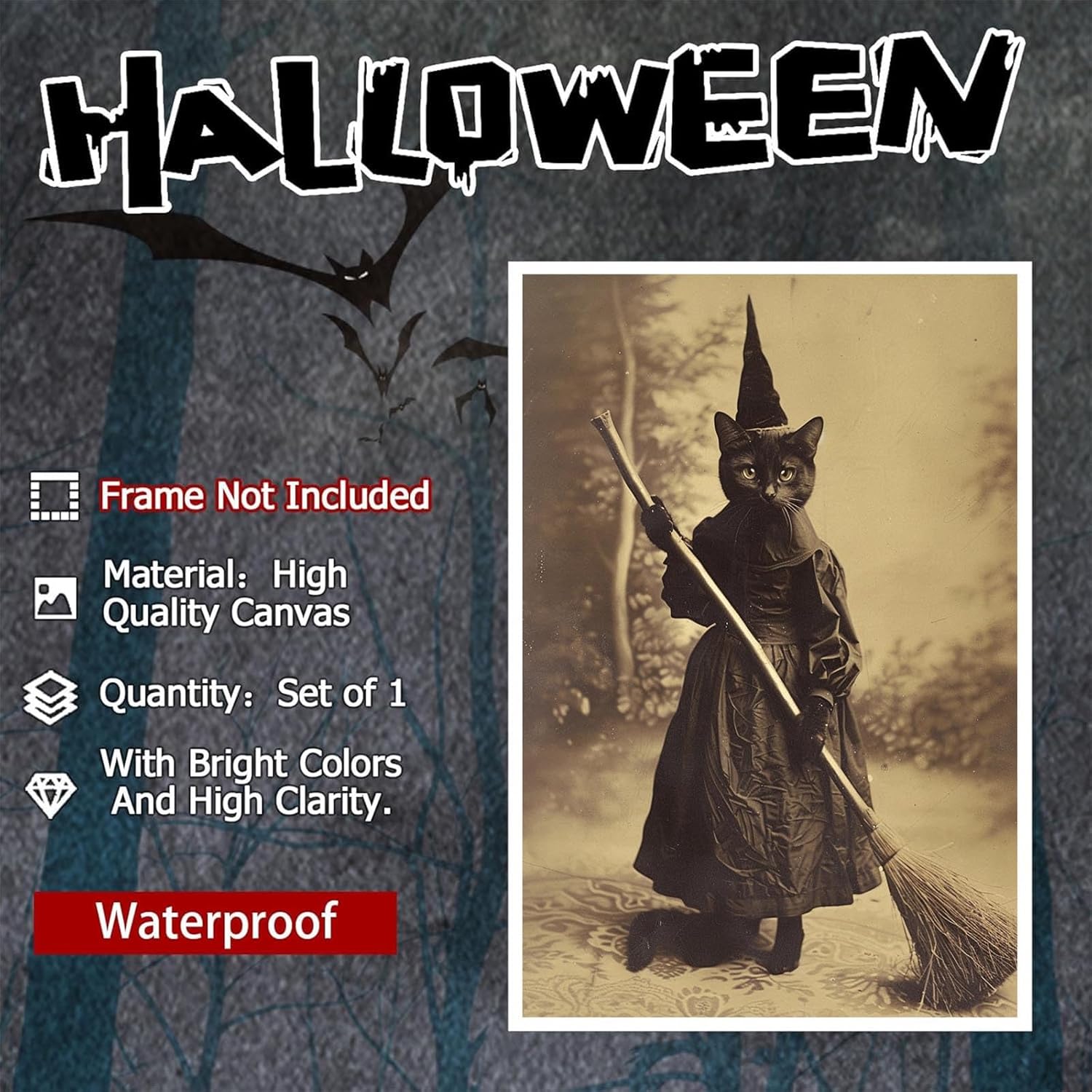 - Artistic Spooky Design: Features a vintage spooky print of a black cat witch performing cleaning chores. This dark academia themed poster canvas wall art serves as the ideal Halloween decor, lending an eerie, intriguing touch to your space.