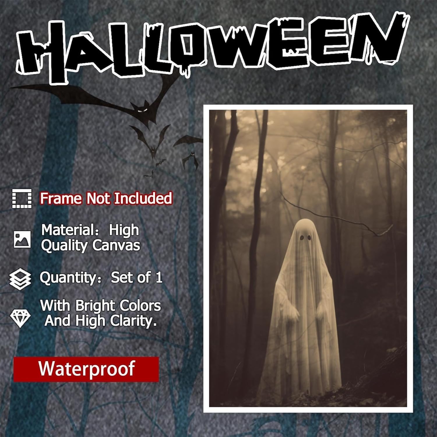 Ghost Forest Spooky Print Poster The Gothic Room Decor Creepy Picture Posters Dark Academia Aesthetic Family Prints Canvas Wall Art Home Apartment Decorations 12X16inch Unframed
