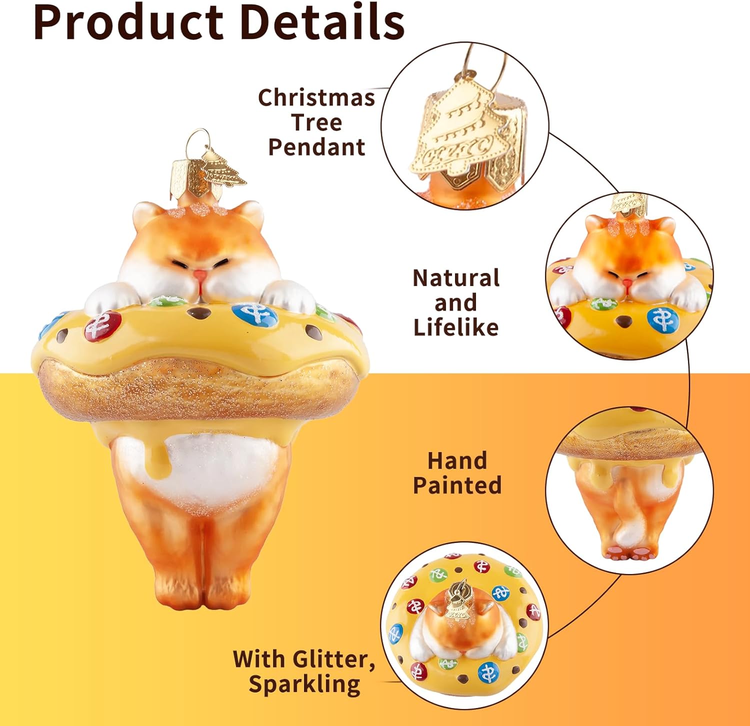 - Exquisite & Unique Design: The Christmas tree ornament is designed with donuts paired with a cute Garfield image, presenting a sweet and naughty atmosphere with bright overall colors. This glass ornament is entirely hand-painted, with exquisite craftsmanship and delicate and vivid imagery. You can decorate any place you want, and believe it can blend well