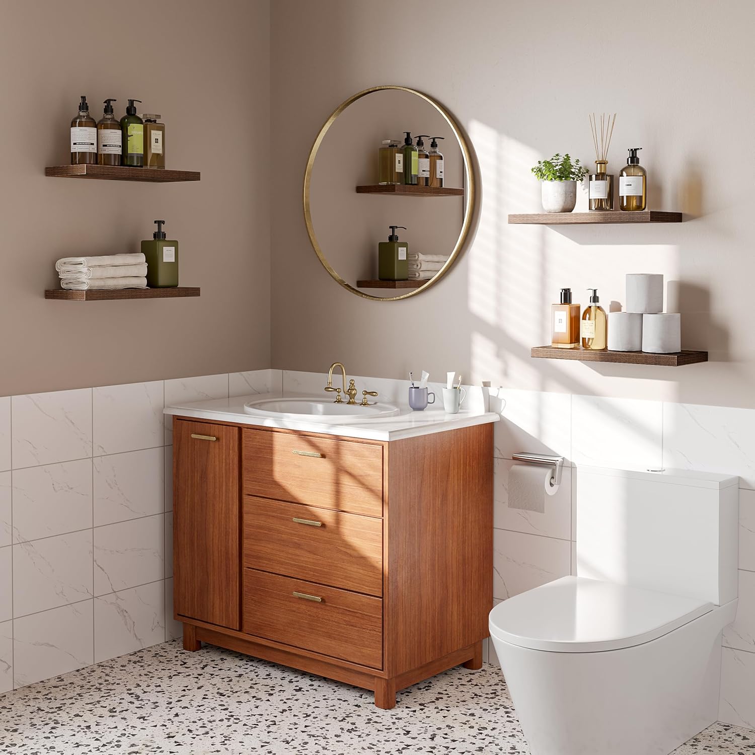 - Set of 4--This set includes four floating shelves, allowing you to create a cohesive look throughout your home. Use them all together or spread them out across different rooms for a coordinated and organized space.
