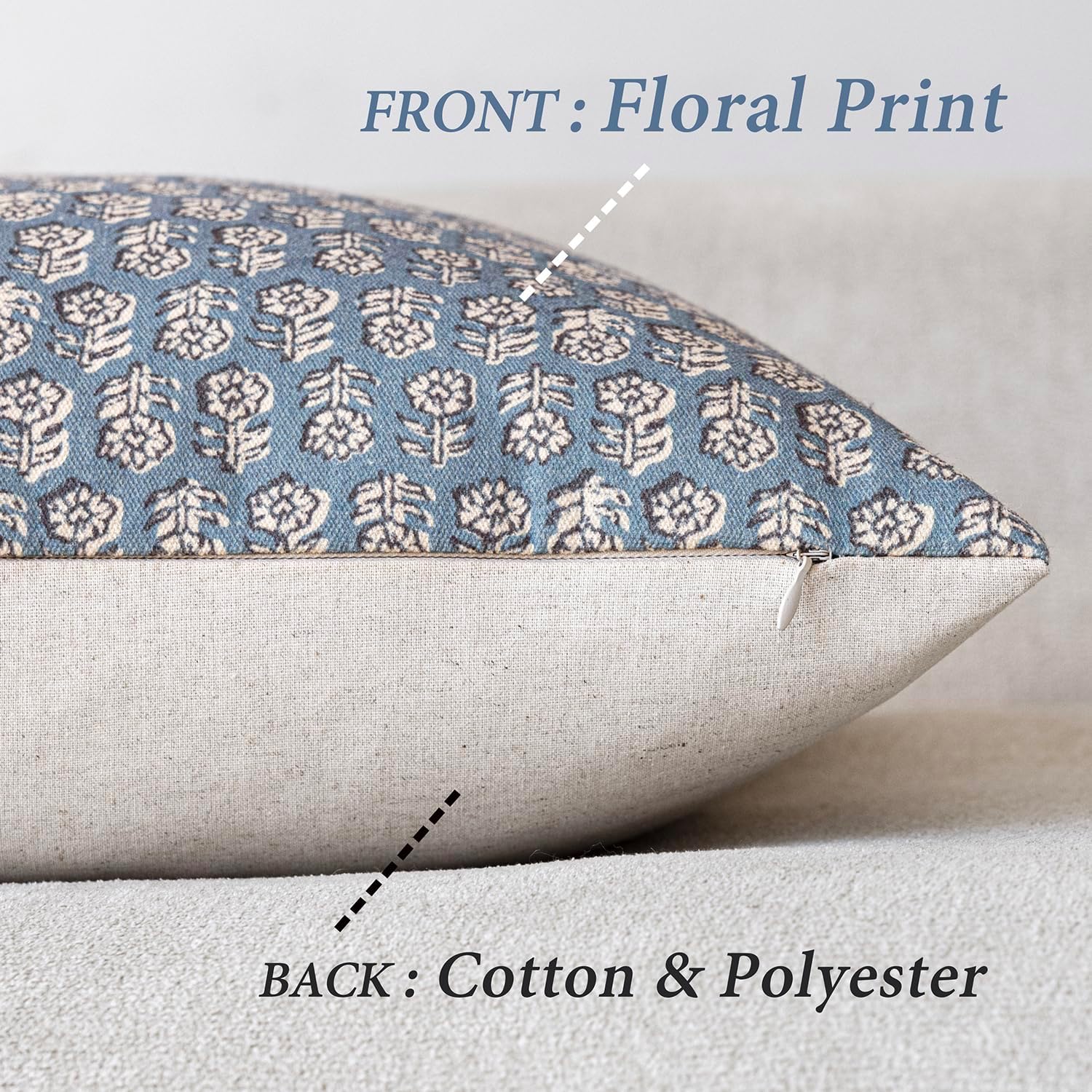 Foindtower Set of 2 Decorative Neutral Floral Print Throw Pillow Covers Vintage Accent Farmhouse Cushion Covers Boho Home Decor for Sofa Couch Chair Bedroom Living Room Outdoor,22×22 Inch,Dusty Blue