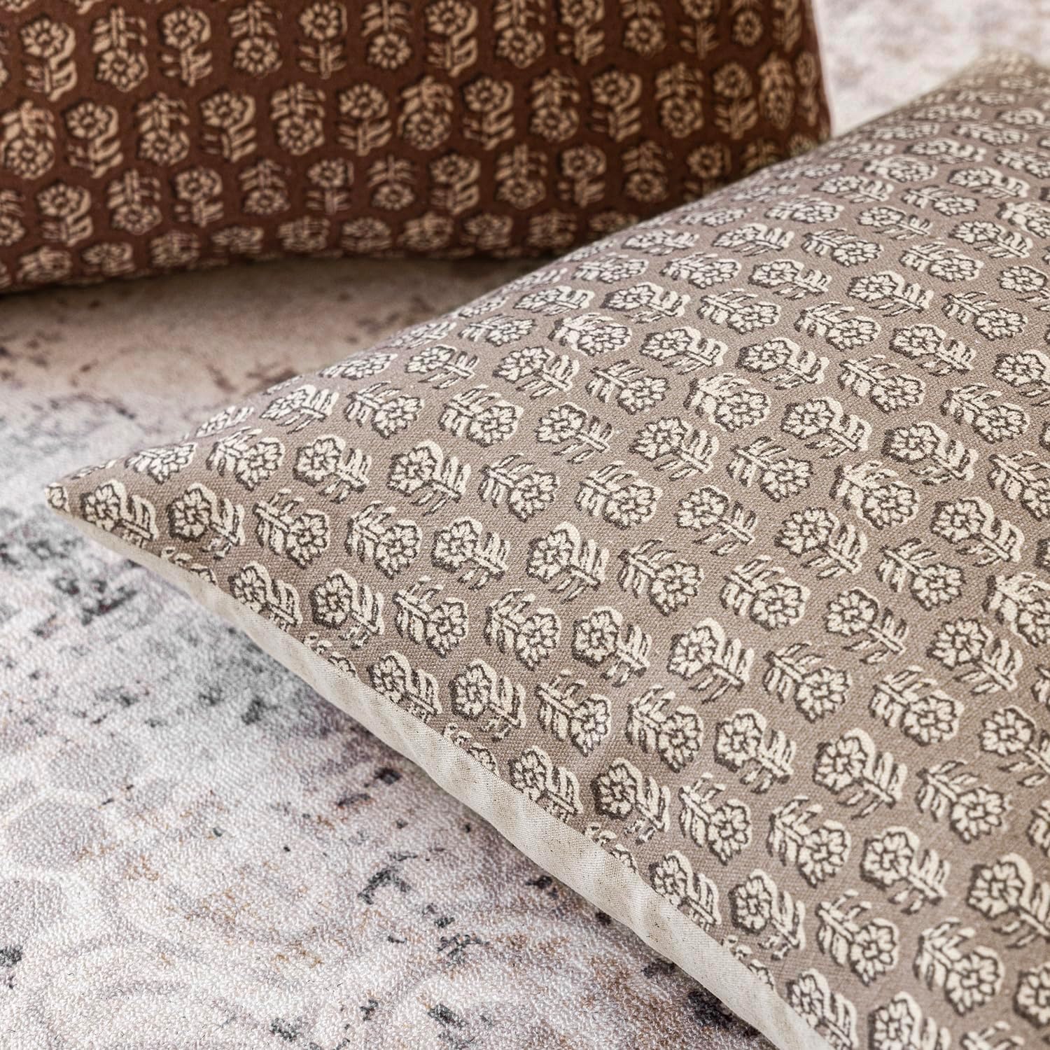 Foindtower Set of 2 Decorative Vintage Floral Print Throw Pillow Covers Neutral Modern Farmhouse Cushion Covers Boho Home Decor for Sofa Chair Couch Bedroom Living Room Outdoor,18×18 Inch,Tan Taupe