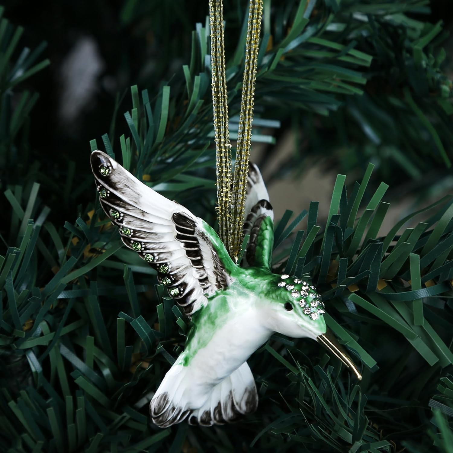 Hand Painted Enamel Hanging Hummingbird Ornament, Elegant Decorative Hanging Ornaments, Christmas Figurine Collectible Keepsake Home Decor, for Christmas Tree, Windows, Satin Ribbon (Hummingbird)