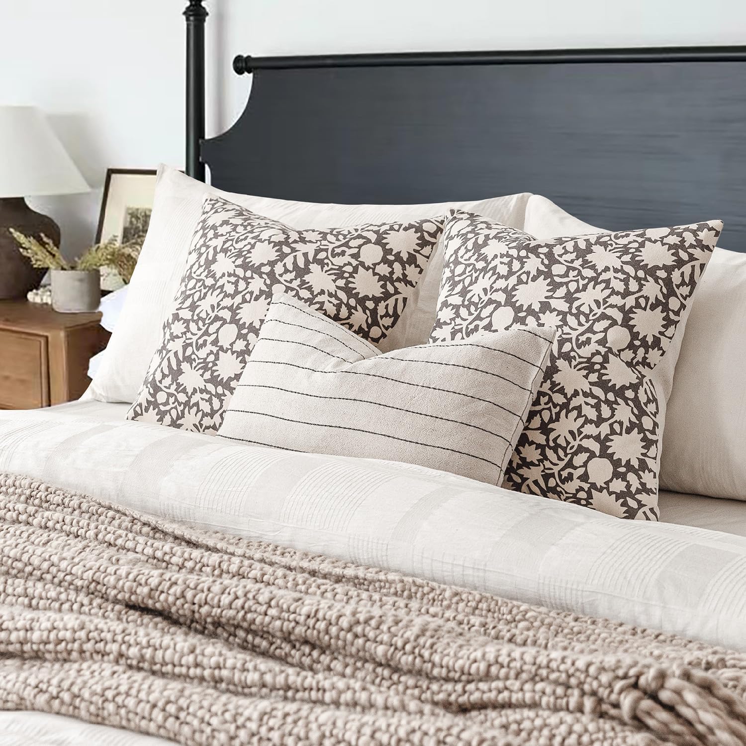 Foindtower Set of 2 Decorative Neutral Floral Throw Pillow Covers Accent Farmhouse Cushion Covers Boho Lumbar Pillowcase for Couch Sofa Bedroom Living Room Home Decor Outdoor,12×20 Inch,Rustic Gray