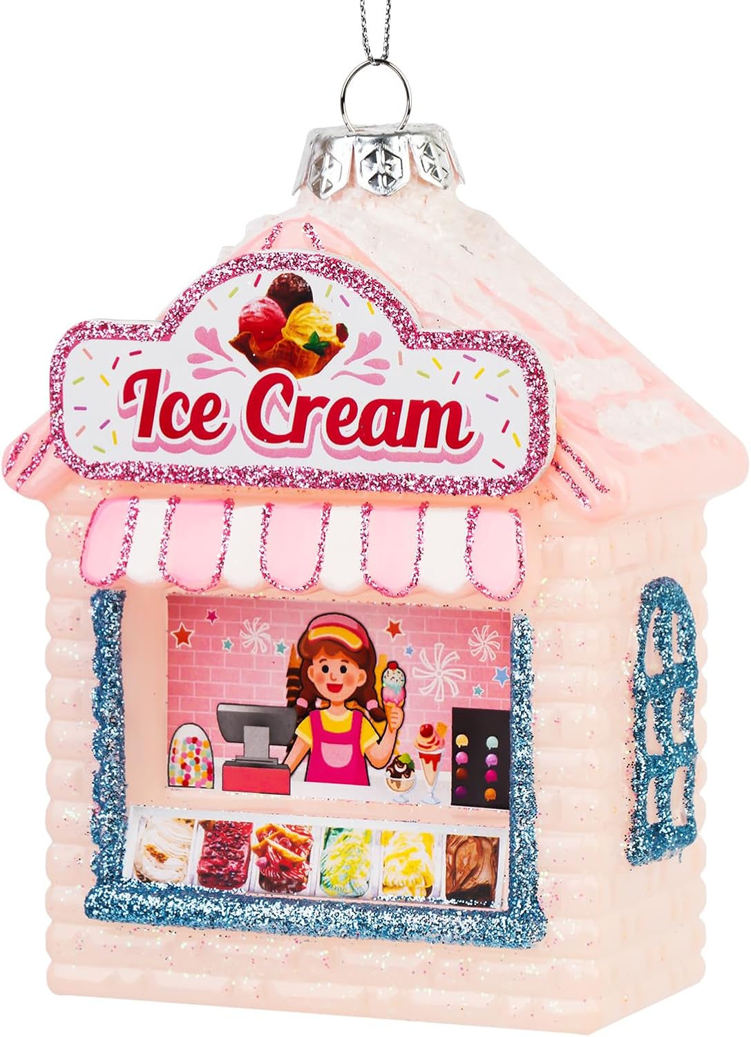 Hanging Christmas Ornaments, 2025 Glass Blown Christmas Tree Ornaments, Pink Christmas Tree Decorations, Funny Gifts & Home Decor, Ice Cream Parlor