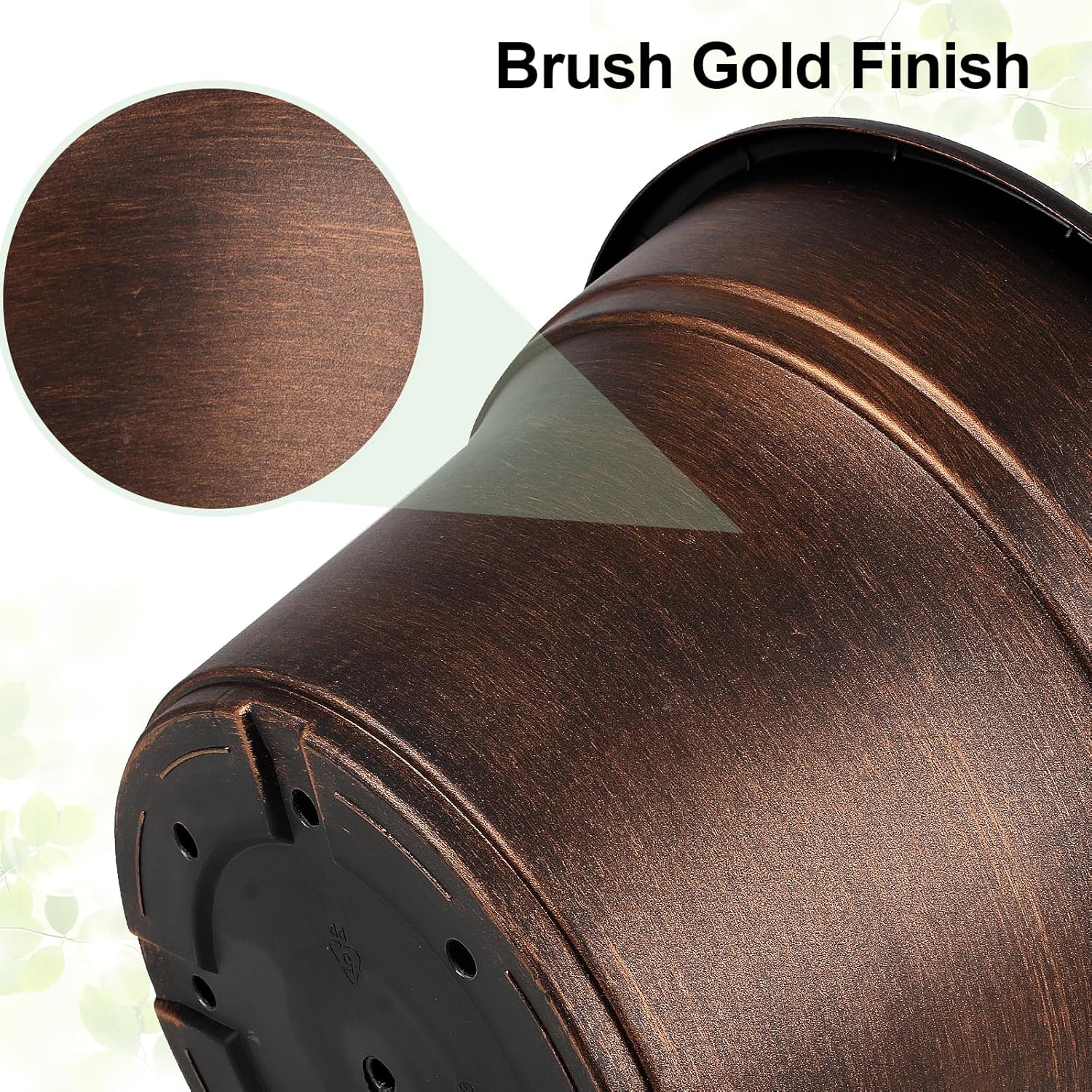10 Inch Planters Plant Pots Indoor Outdoor, 4 Pack Plastic Flower Pot for Indoor Plants with Drainage Holes & Trays, Resin Decorative Container Sets with Saucer for House Garden Copper