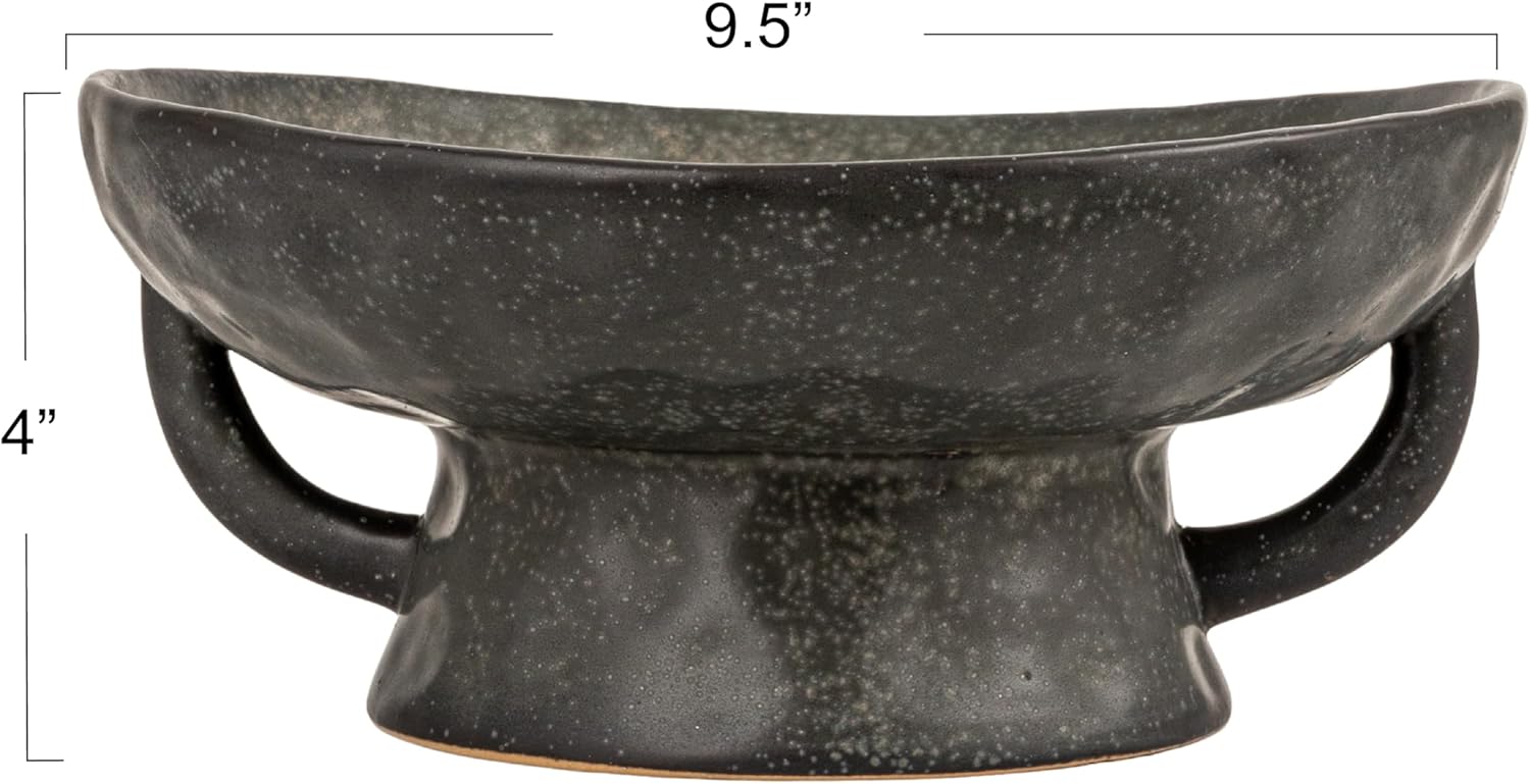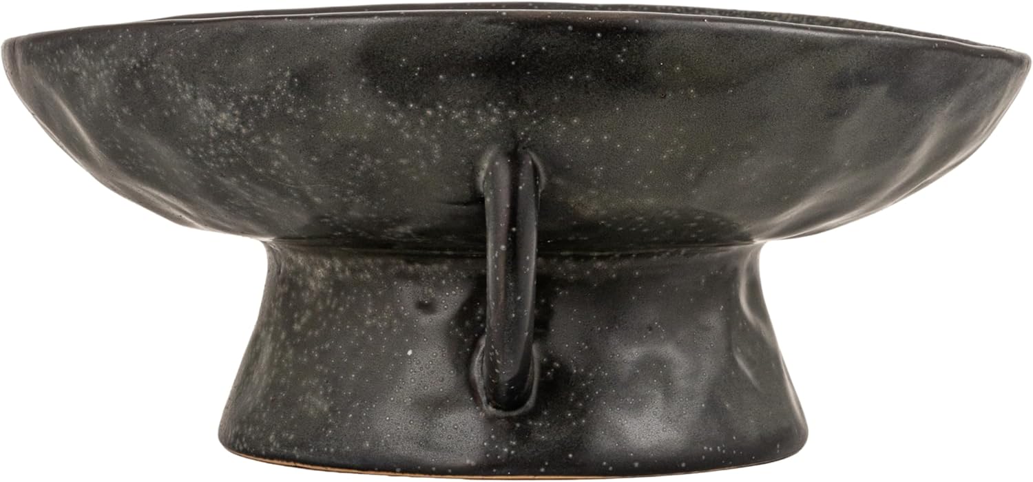 Creative Co-Op Stoneware Footed Pedestal/Bowl with Handles, Reactive Glaze, Black