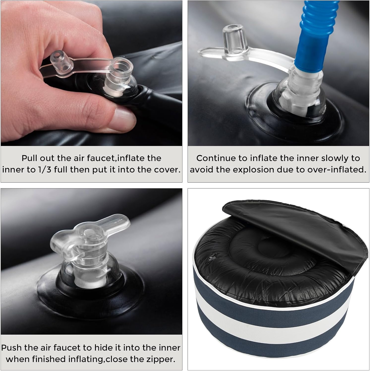 - ăDurable Outdoor Materială-Inflatable ottoman cover made from durable, waterproof material that can withstand exposure to all weather. Fade-Resistant keep its original color and pattern even if exposed to the direct sunlight for over 500 hours. The black inner made of waterproof thick PVC fabric that can bear up 300 lbs.Very easy to clean and maintain.