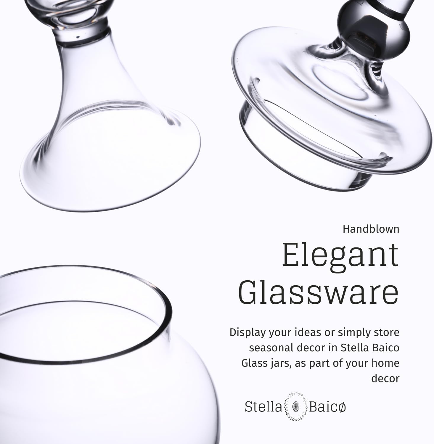 - HAND-BLOWN GLASS: Crafted from durable, high-quality hand-blown clear glass, this apothecary jar features a sleek, crystal-clear design that showcases its contents. Small air bubbles are a natural part of the hand-blown process, adding to its unique charm.