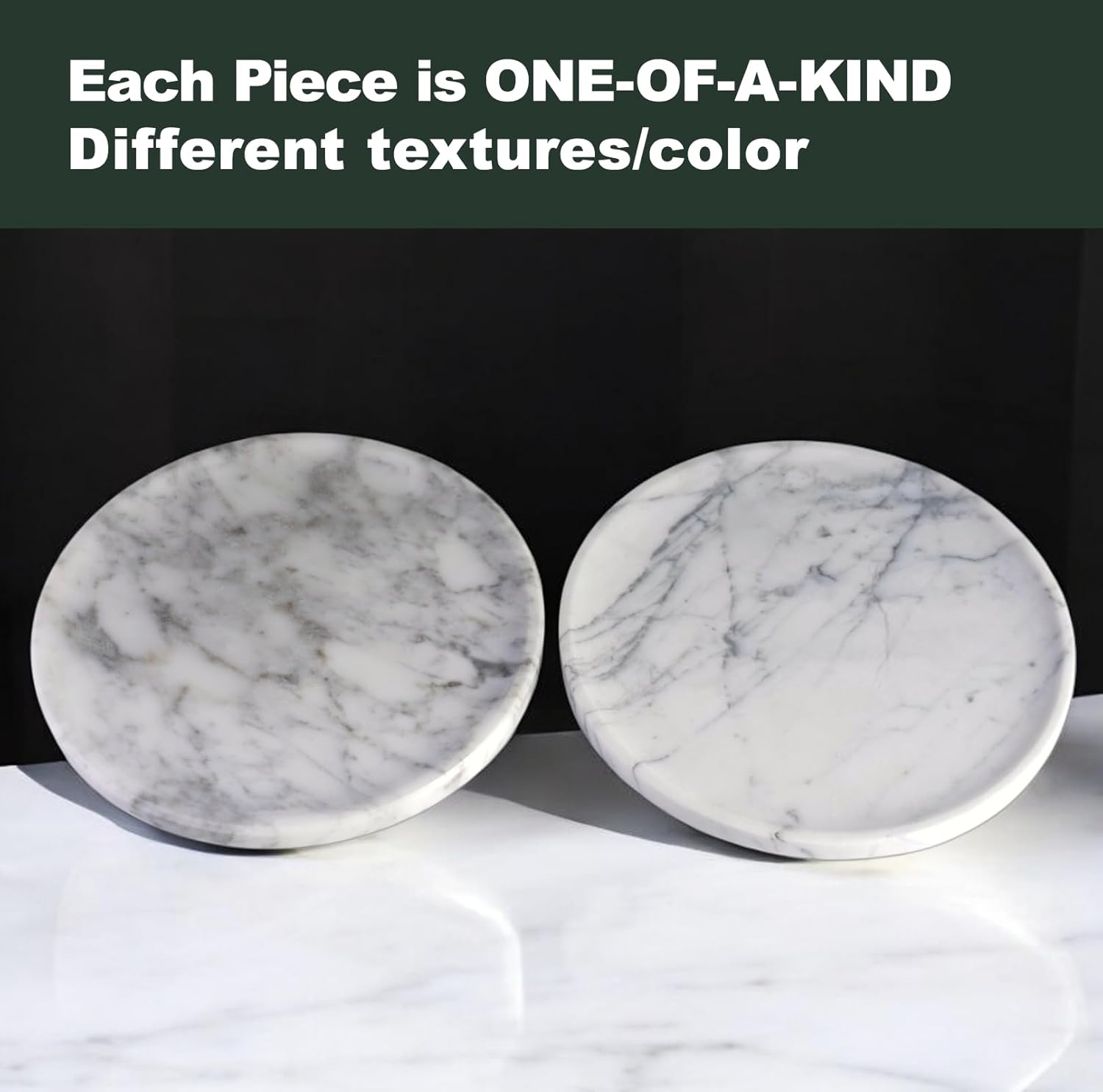 - Suitable Size: Our round marble tray measures D11”x H0.7”. This bathroom counter tray fits entrance, hallways, dining table, kitchen, dresser, bathroom vanity countertop, bedroom, coffee table, closet, bar, balcony, bedside table, end table, nightstand