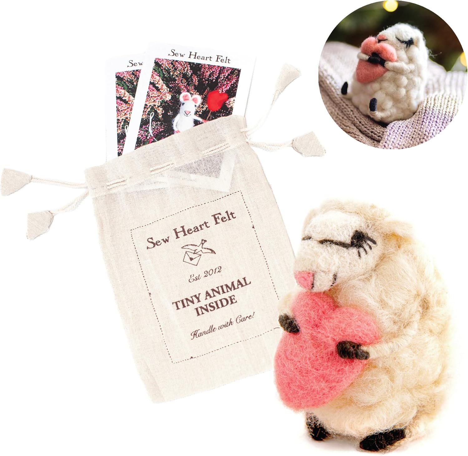 - Hand Felted Loving Lottie Sheep Hugging Heart: Hand needle felted woolly sheep with very detailed fine work. Lottie has tiny glass eyes and a soft looped pure wool coat. A unique and adorable gift perfect for any occasion. An artisan masterpiece, delivered in a charming little home gift box—perfect for kids, friends, couples, or as a thoughtful gift.