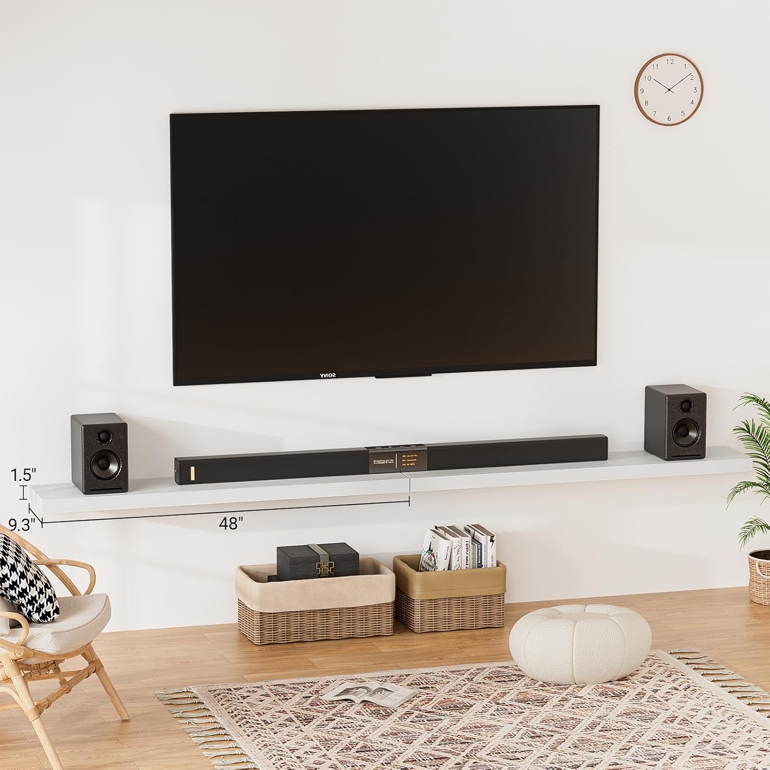 - ăLonger DesignăOur pretty white floating shelves for wall are 48"W x 9.3"D x 1.5"H.Our wall shelf is longer than traditional designs and can hold more items.The white floating shelf optimize wall space,helping organize essentials without taking up floor space in your home.