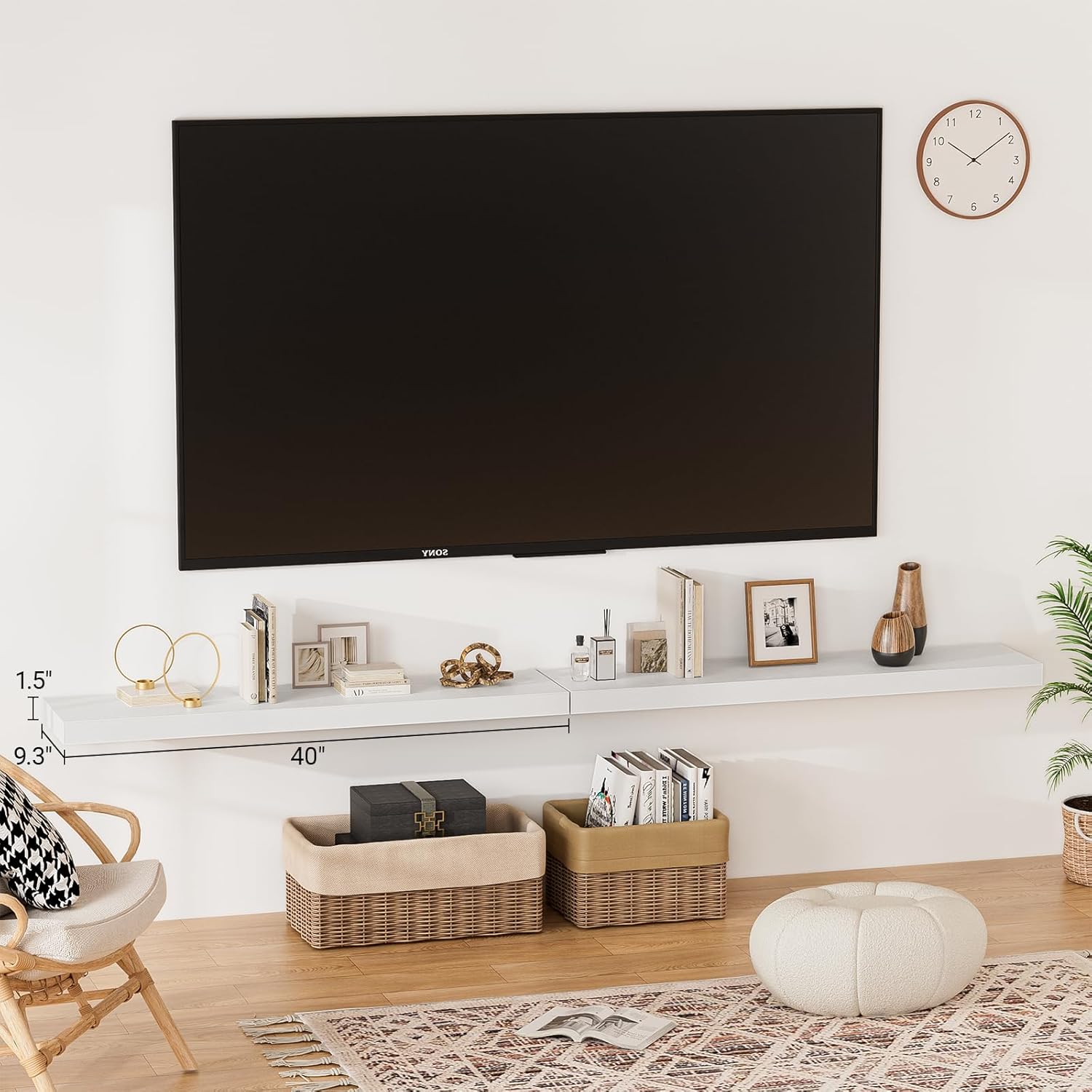 40 Inches Floating Shelves for Wall,9.3" Deep White Long Floating Shelves Set of 2,Large Display & Storage Shelf,Wall Shelf for Bathroom Bedroom Living Room Kitchen Office
