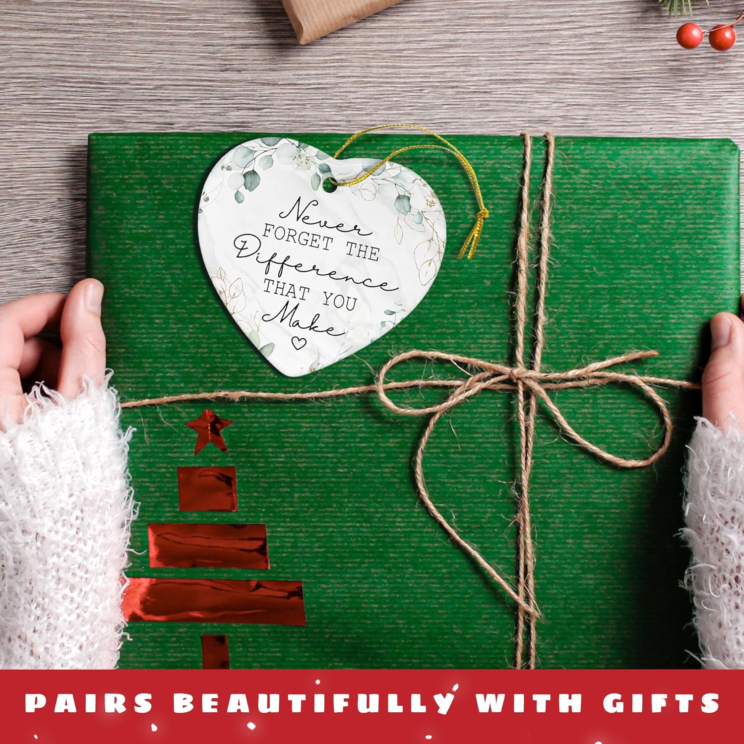 Thank You Gifts - Never Forget The Difference That You Make Ornament - Appreciation Gifts for Women, Boss, Coworker, Teacher, Nurse - Inspirational Farewell Going Away Gift - Ceramic Ornament