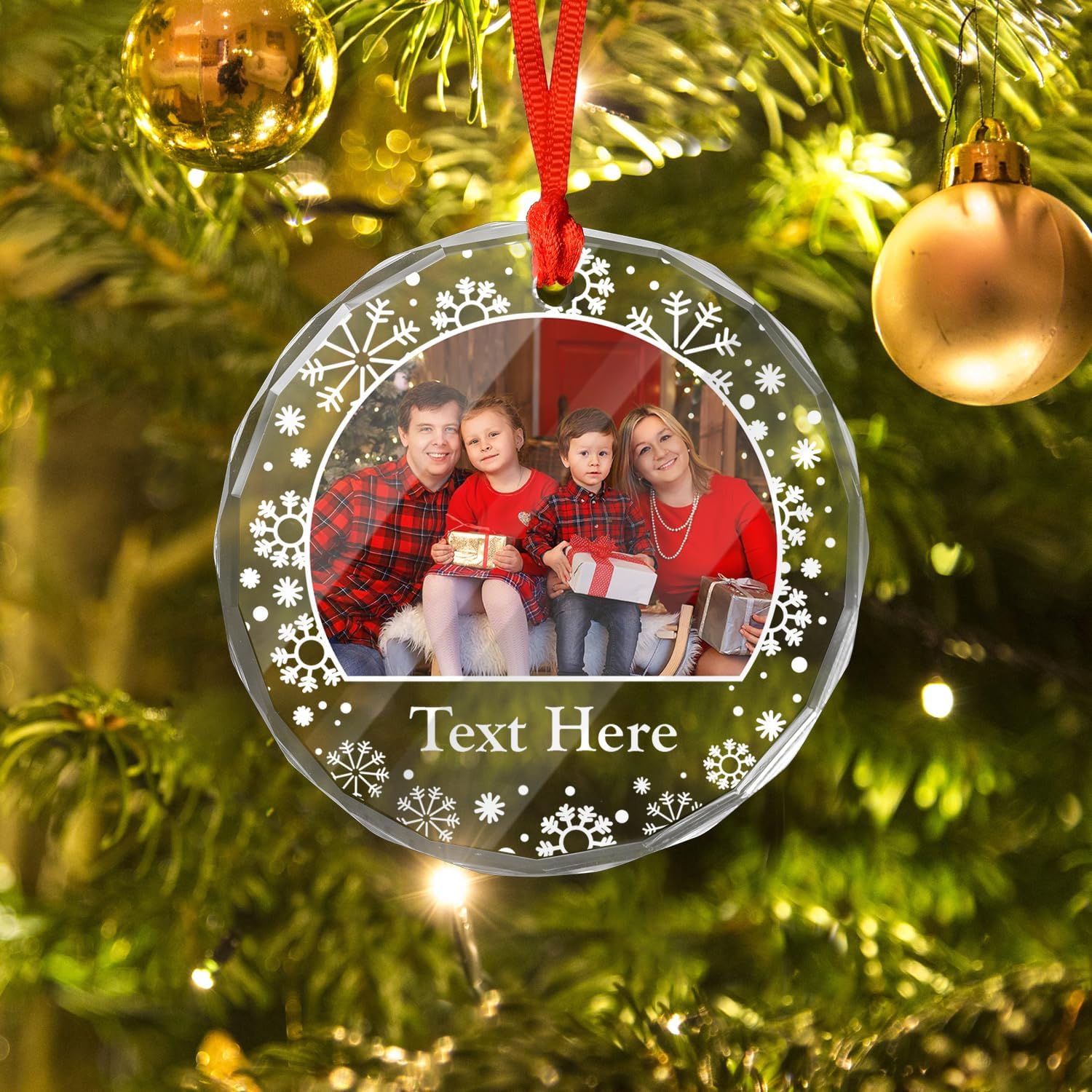- 🎄Personalized Crystal Photo Ornaments --- Let your special memories live forever! You can add photo of yourself with your family, friends, or anyone close to you, along with any text you desire, to the crystal pendant, and we will customize it specifically for you.