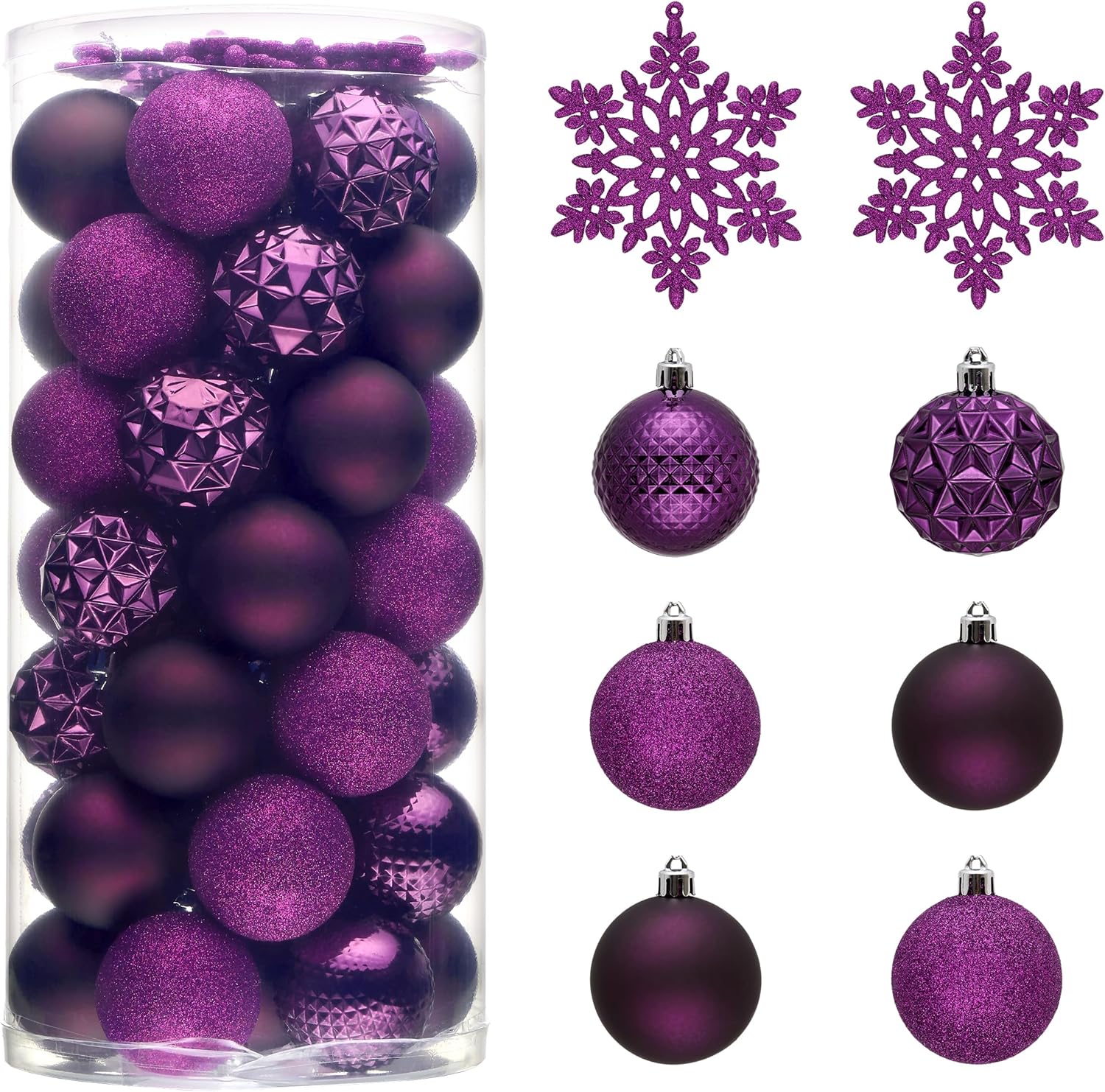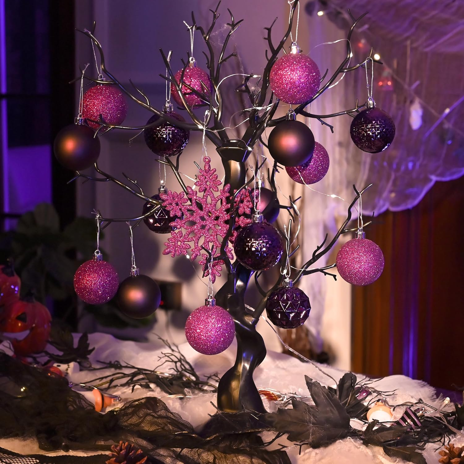 Valery Madelyn Christmas Tree Decorations Ornament Set for Fall Halloween, 50ct 2 Inches Purple Shatterproof Christmas Ball Ornaments Hanging Xmas Holiday Party Decor