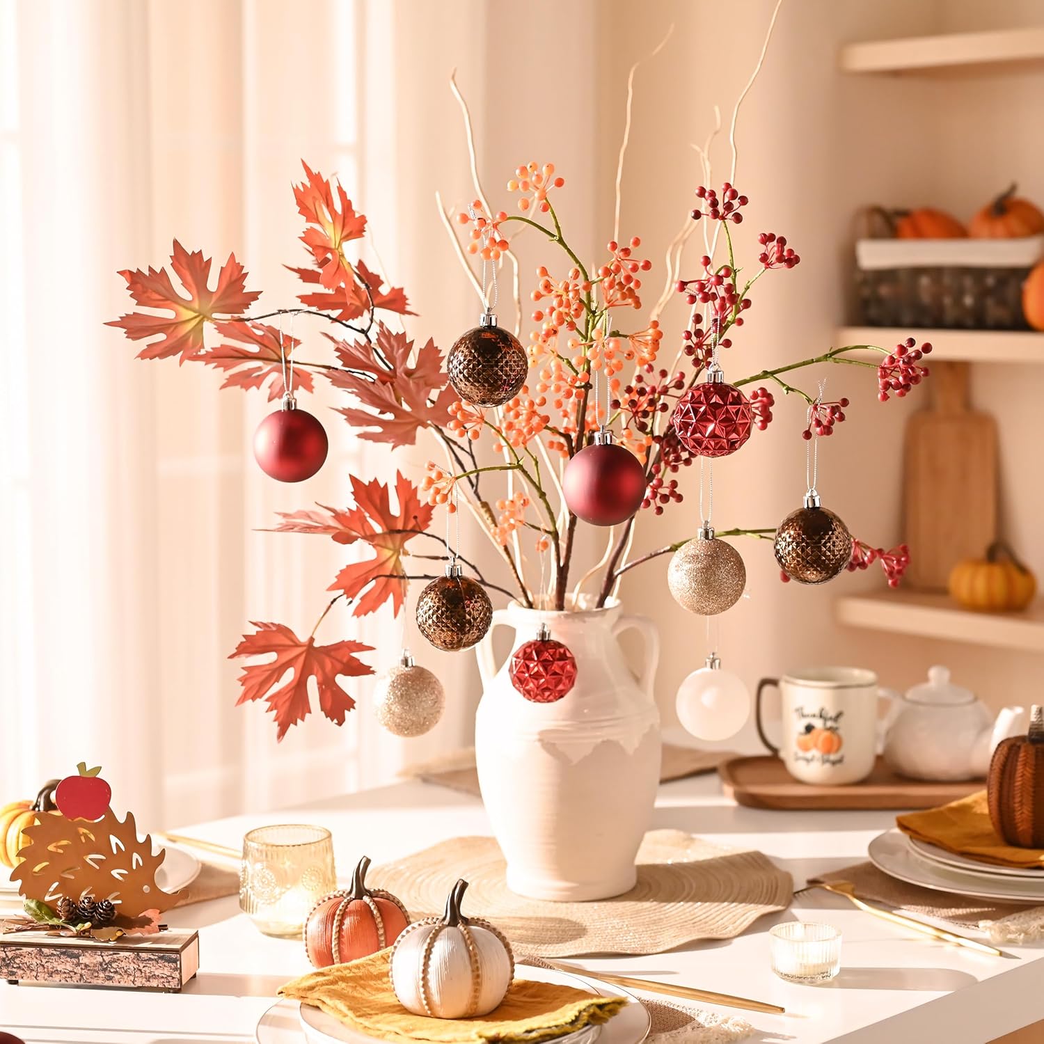 - 【Firm Cap & Ready to Hang】The sturdy plastic caps of autumn decor can support the weight of 335ml of water and come with a pre-tied string, making it easy to hang them on your tree or other desired locations