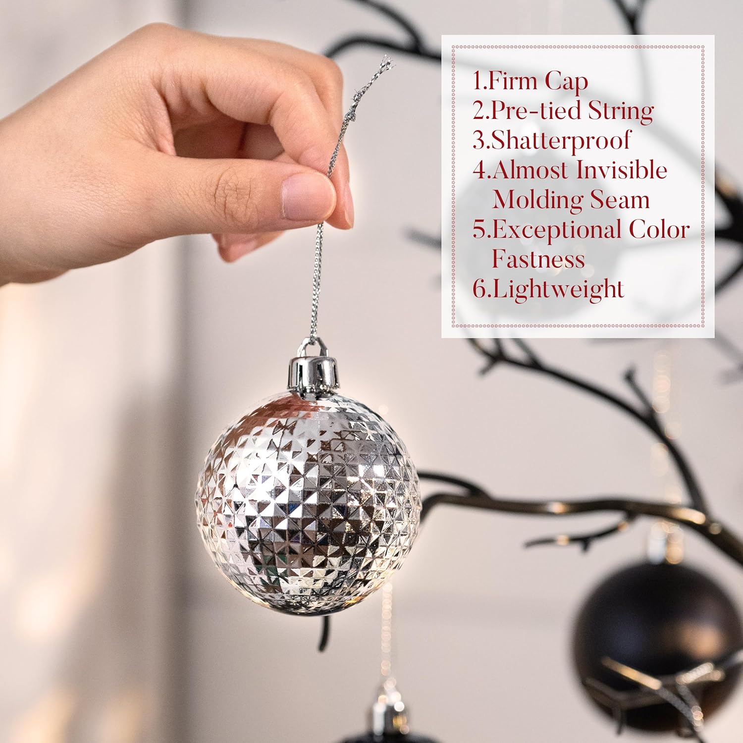 - 【Package and Size】This ornament ball set include 50pcs Christmas ornaments measuring 2 inches in diameter, featuring seamless connections for a polished look