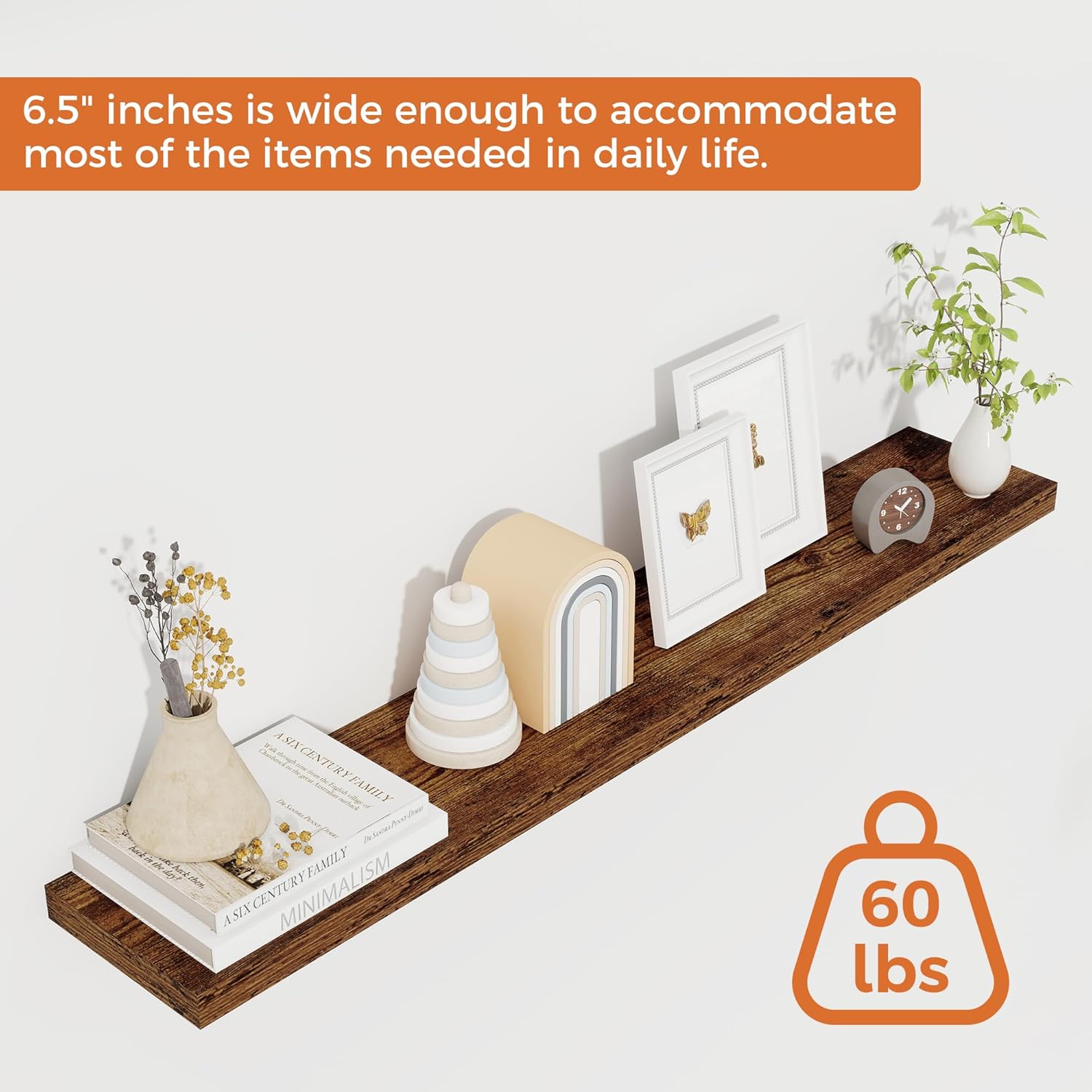 • EASY TO ASSEMBLE: Upgraded hidden mounting bracket aligns ensure a sleek floating effect, making the shelves secure. Instructions, a magnetic level, drywall anchors, and screws are included, making it easy to mount these rustic shelves gap-free in under 8 minutes