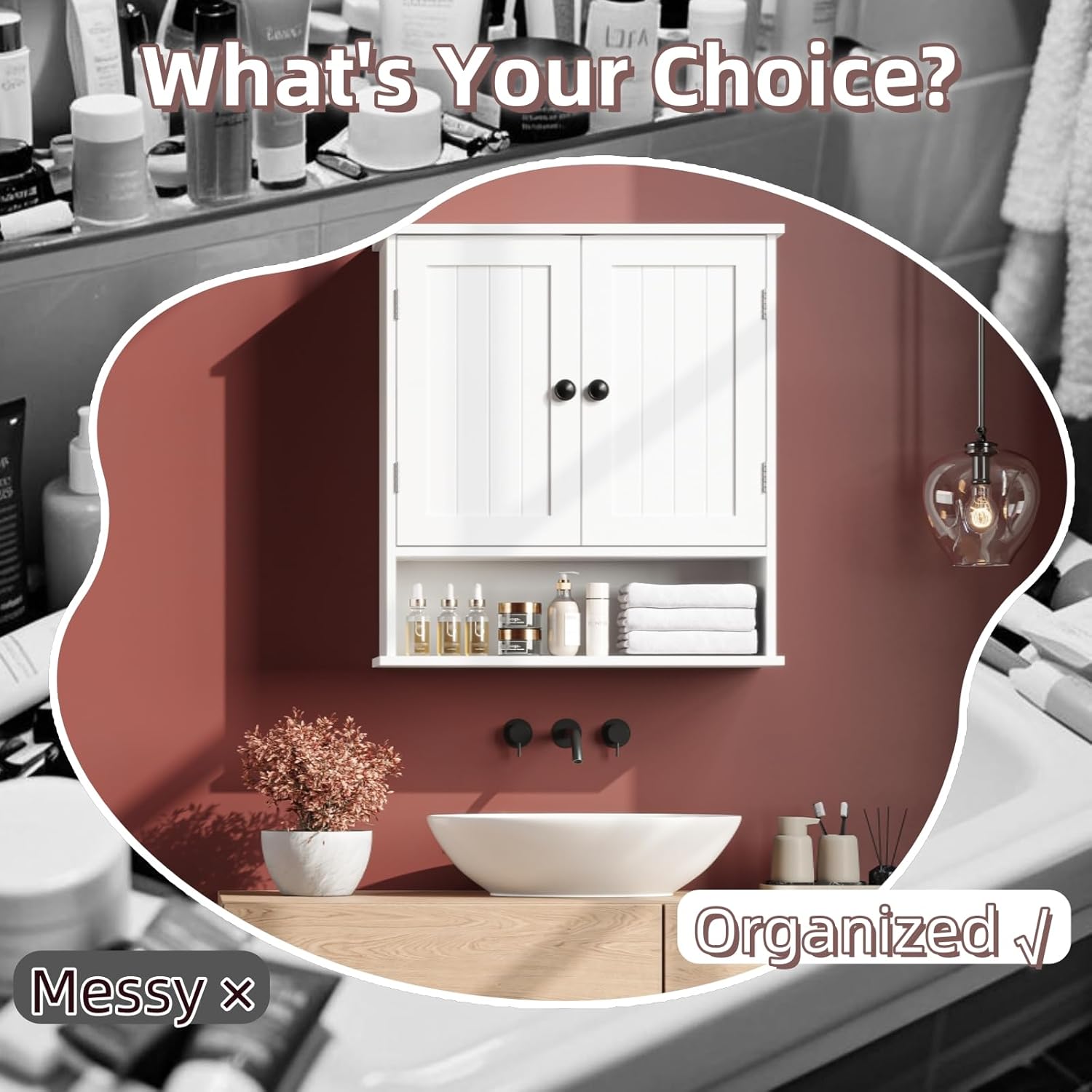 - Your Storage, Your Rules – Adjust Like a Pro! – Bathroom cabinet 2 adjustable shelves bend to your needs! Fit jumbo shampoo bottles, skincare stacks, or tall vases – no more awkward gaps. Bonus tip: Add bins for tiny items (razors, hairpins) – genius!