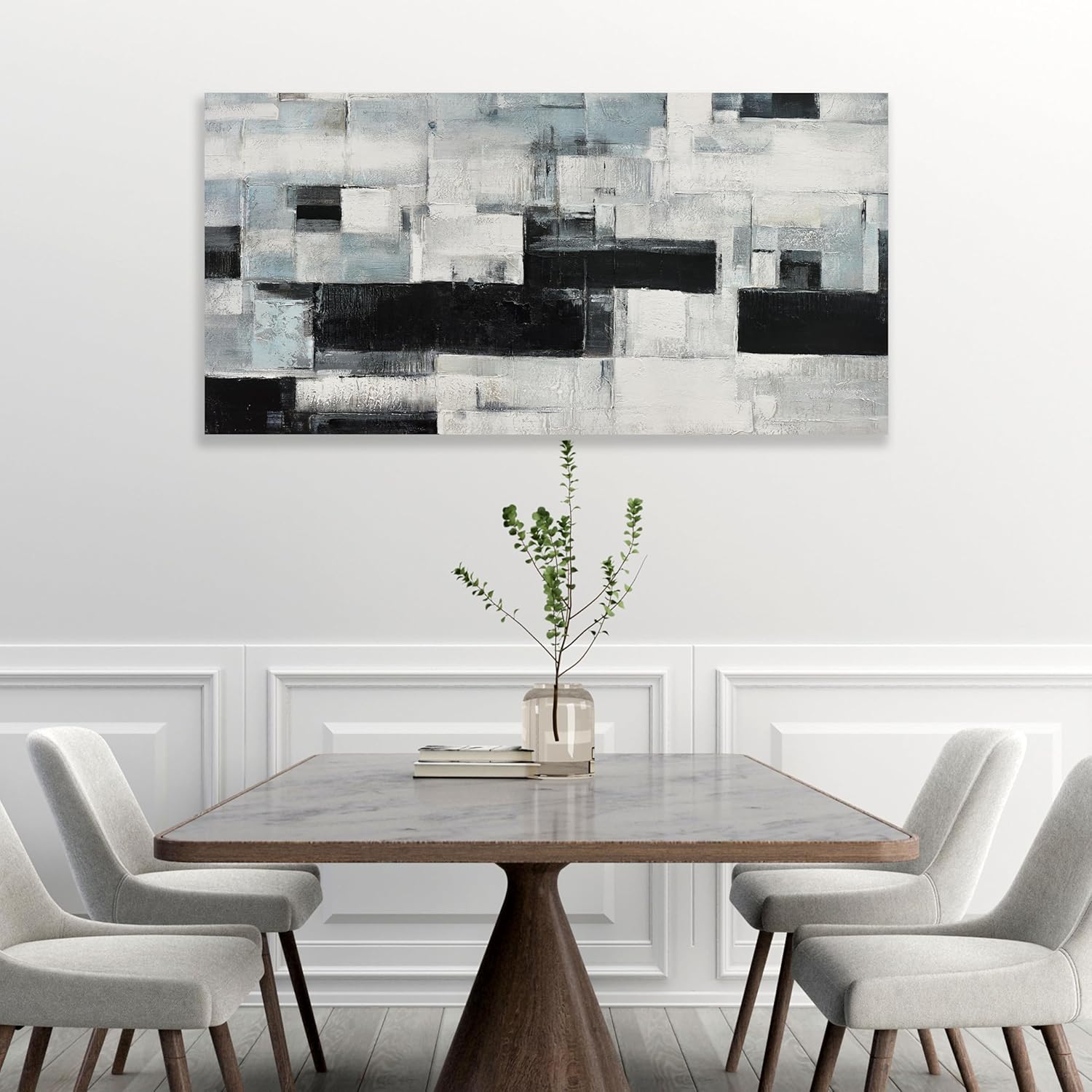 Glvzygy Abstract Wall Art Room Decor Black White and Gray Plaid Minimalism Picture Abstract Art Wall Decor Modern Abstract Wall Art Canvas for Living Room Bedroom Office 29"x58"