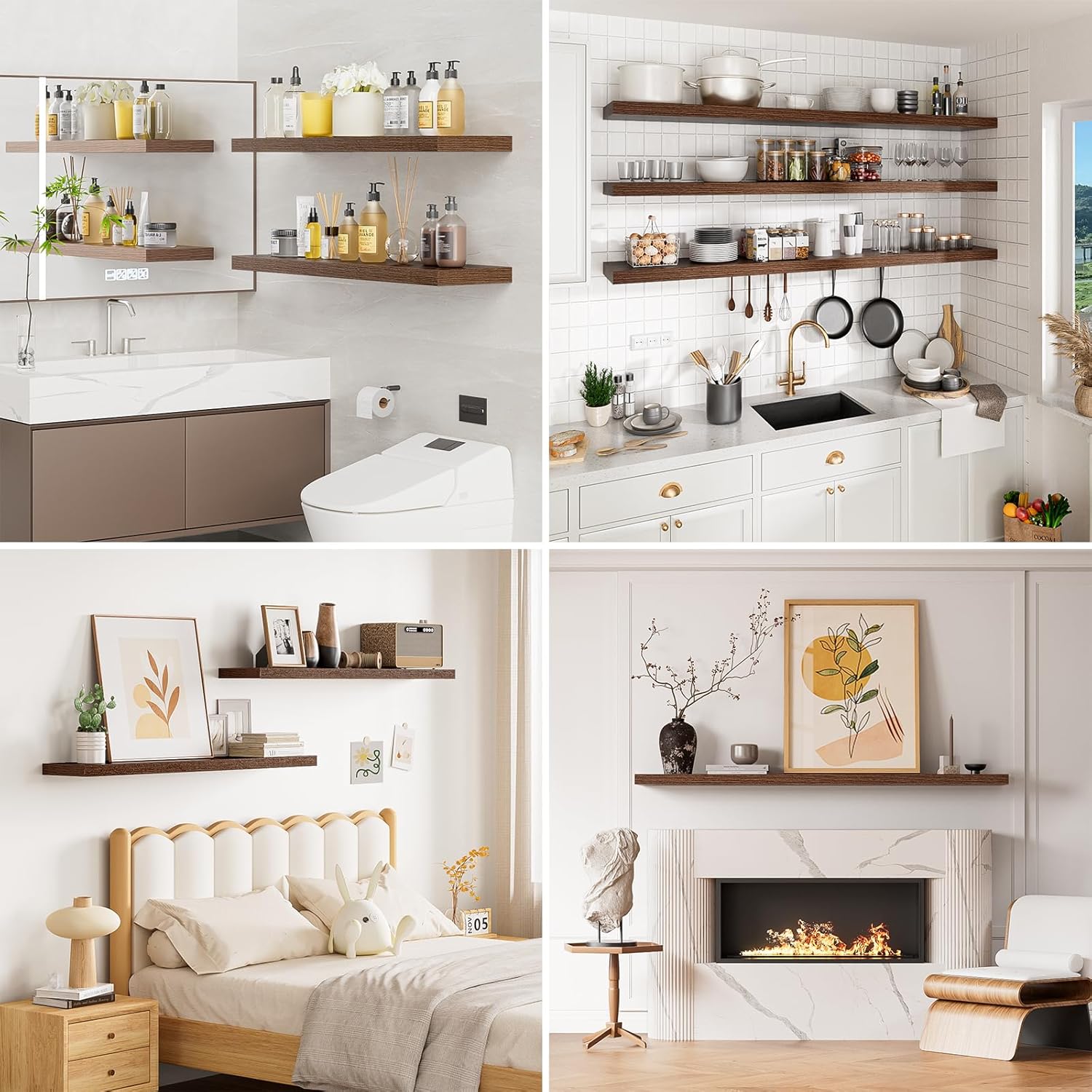 - ăMulti-used ApplicabilityăInvisible long floating shelf for living room,bedroom,study,bathroom & kitchen decor.It can be used as wall shelves for bedroom,wall shelves for living room,floating shelves for kitchen,floating shelves bathroom,coffee bar shelves,etc..