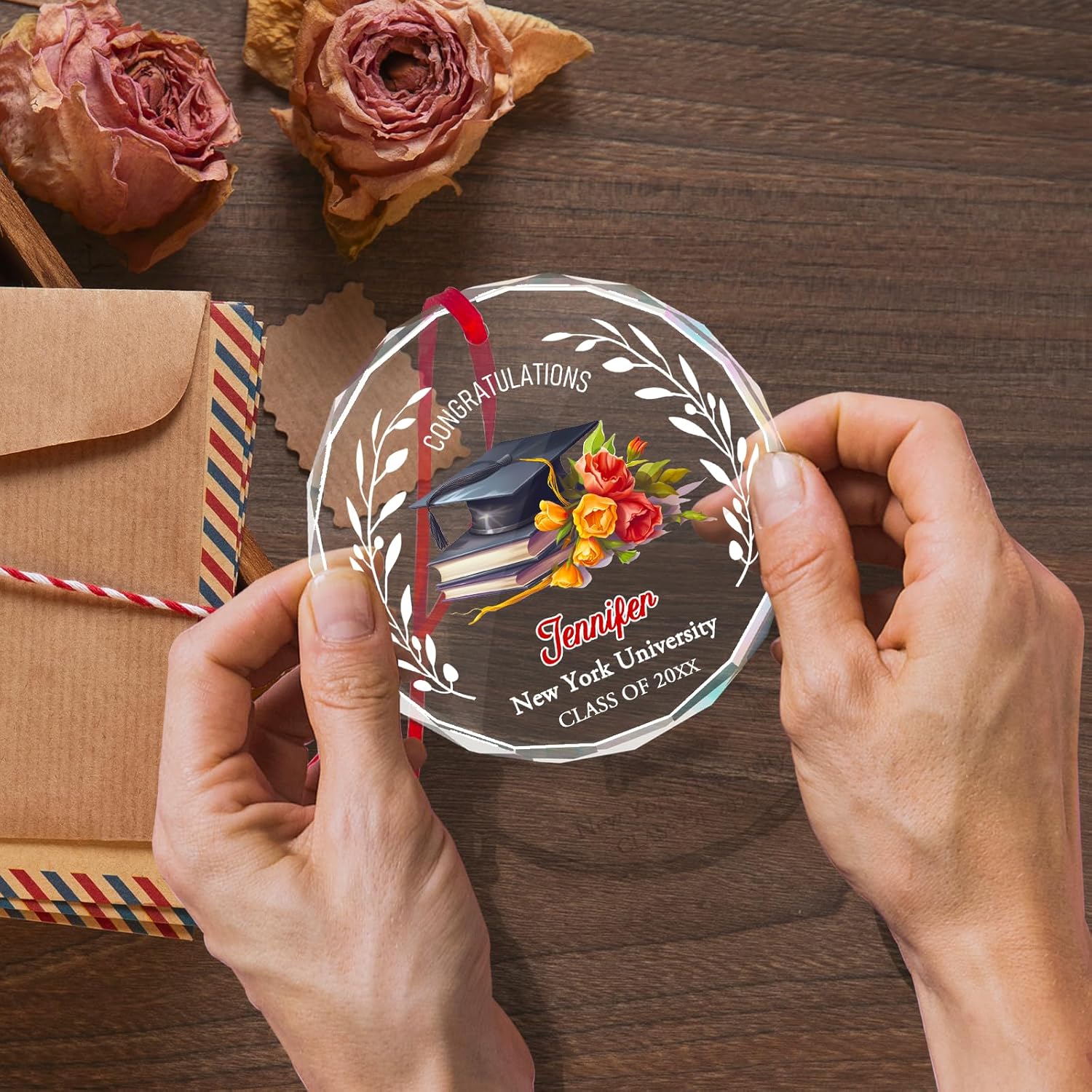 - Graduation Decor: Comes with a red ribbon, this beautiful personalized graduation glass ornament can be hung in any prominent place, desk, office, wall of honor, Christmas tree, doors, windows, walls and anywhere you want to decorate