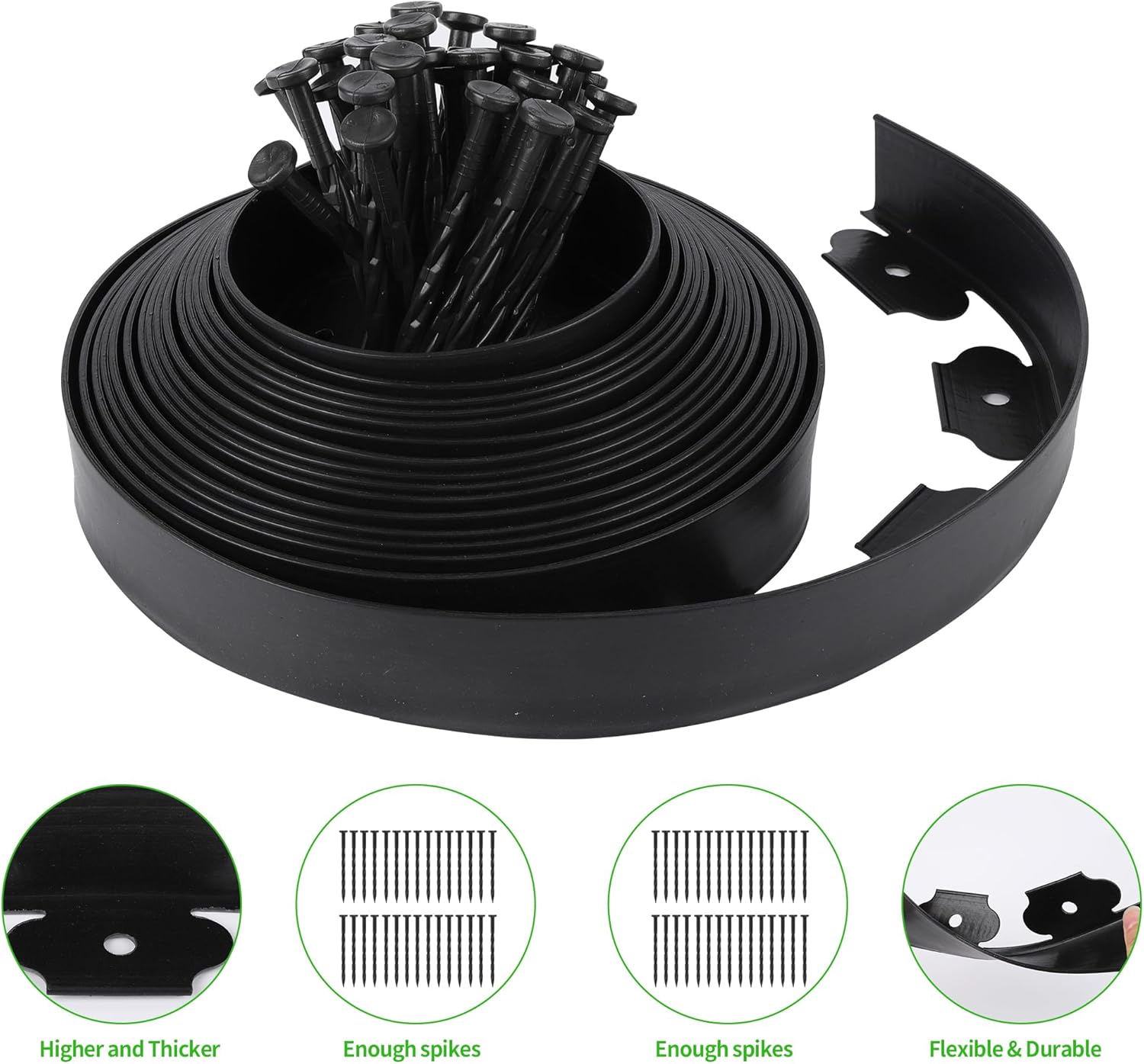 Garden Landscape Edging Kit Flexible Lawn Edging, Landscape Edging Border 33 FT with 30 Spikes, 2" Tall No Dig Garden Edging Roll for Landscaping Flower Beds Yard Pathway (2IN x 66FT, Black)