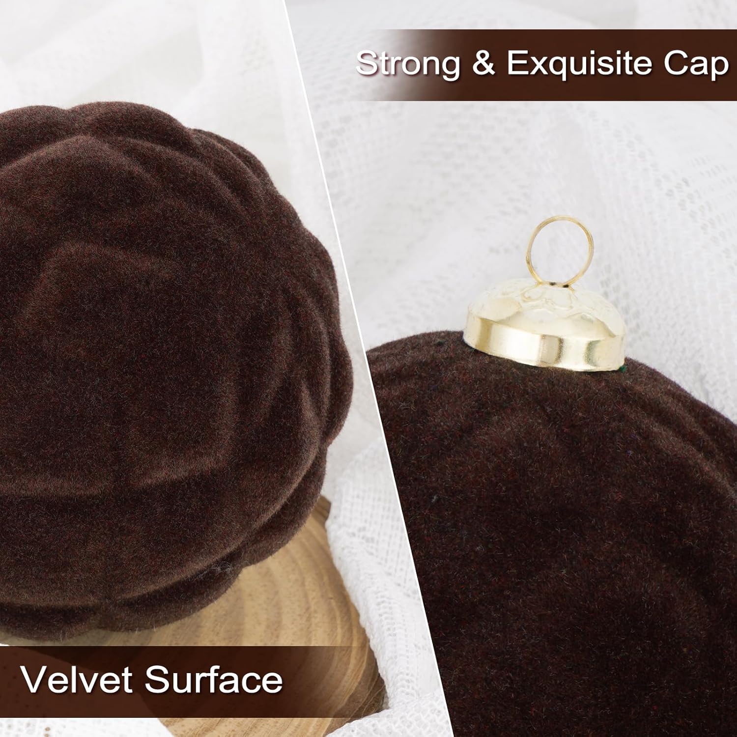 - Luxurious Velvet Texture:Each ornament is covered with soft velvet, giving off a high-end and elegant appearance. This texture not only looks great but also brings a cozy touch, making your home feel like a warm and stylish winter wonderland.