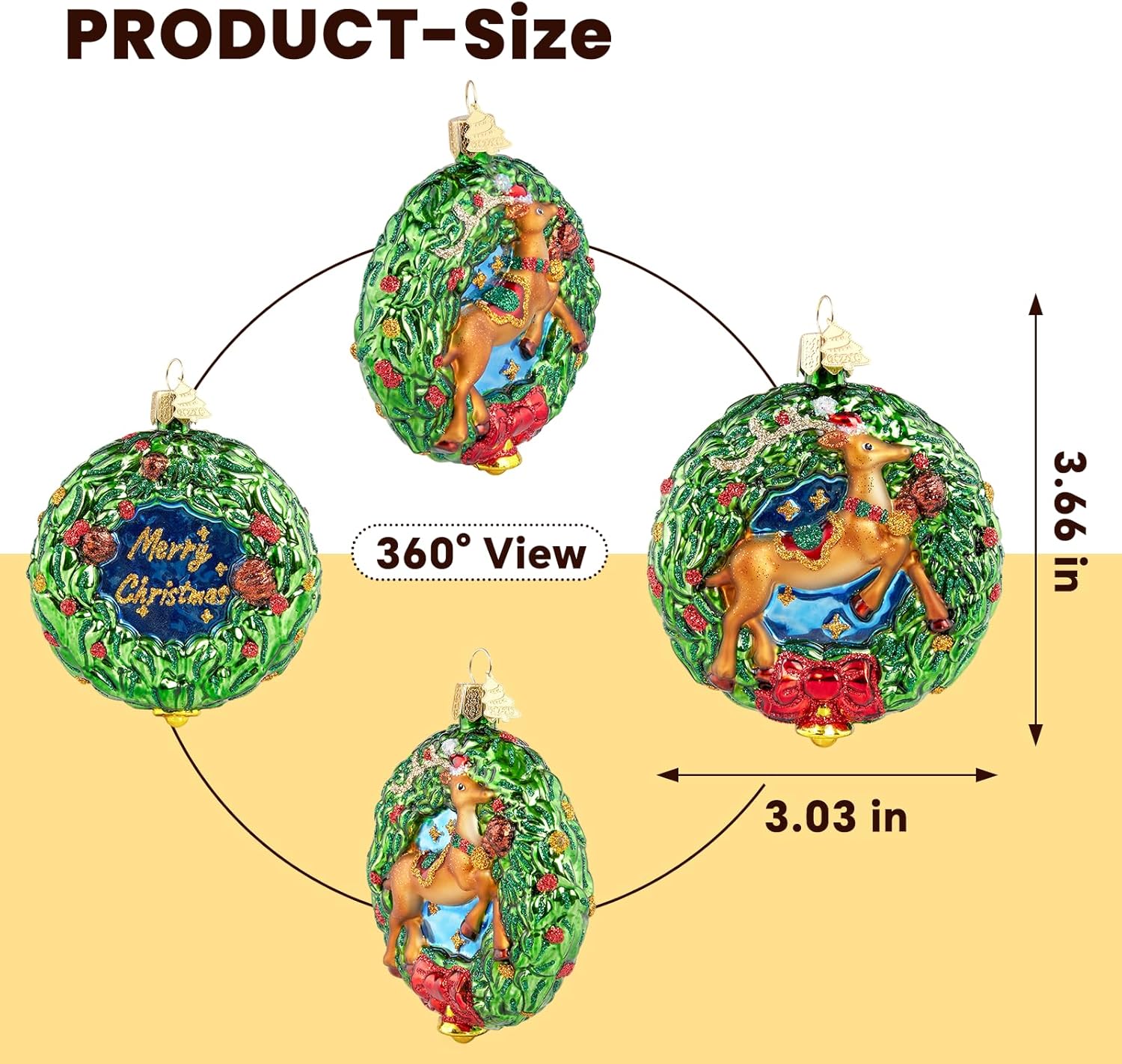 Reindeer Christmas Tree Ornaments,Blown Glass Christmas Ornaments, Wreath Collection Hanging Ornaments,Glass Home Decorations for Animal Lovers Holiday Party Daily Gifts