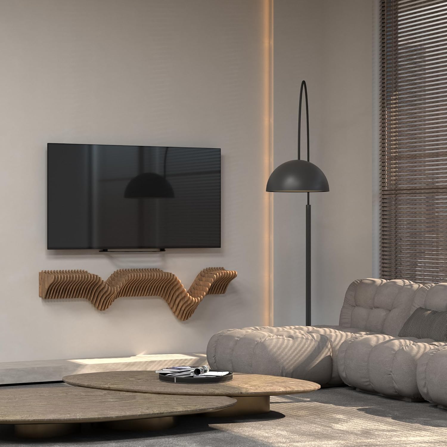 Parametric 40 inch Floating Shelf TV Unit Modern Geometric Wooden Wall Piece Decor Natural Oak Color 3D Wavy Living and Gaming Room Shelf