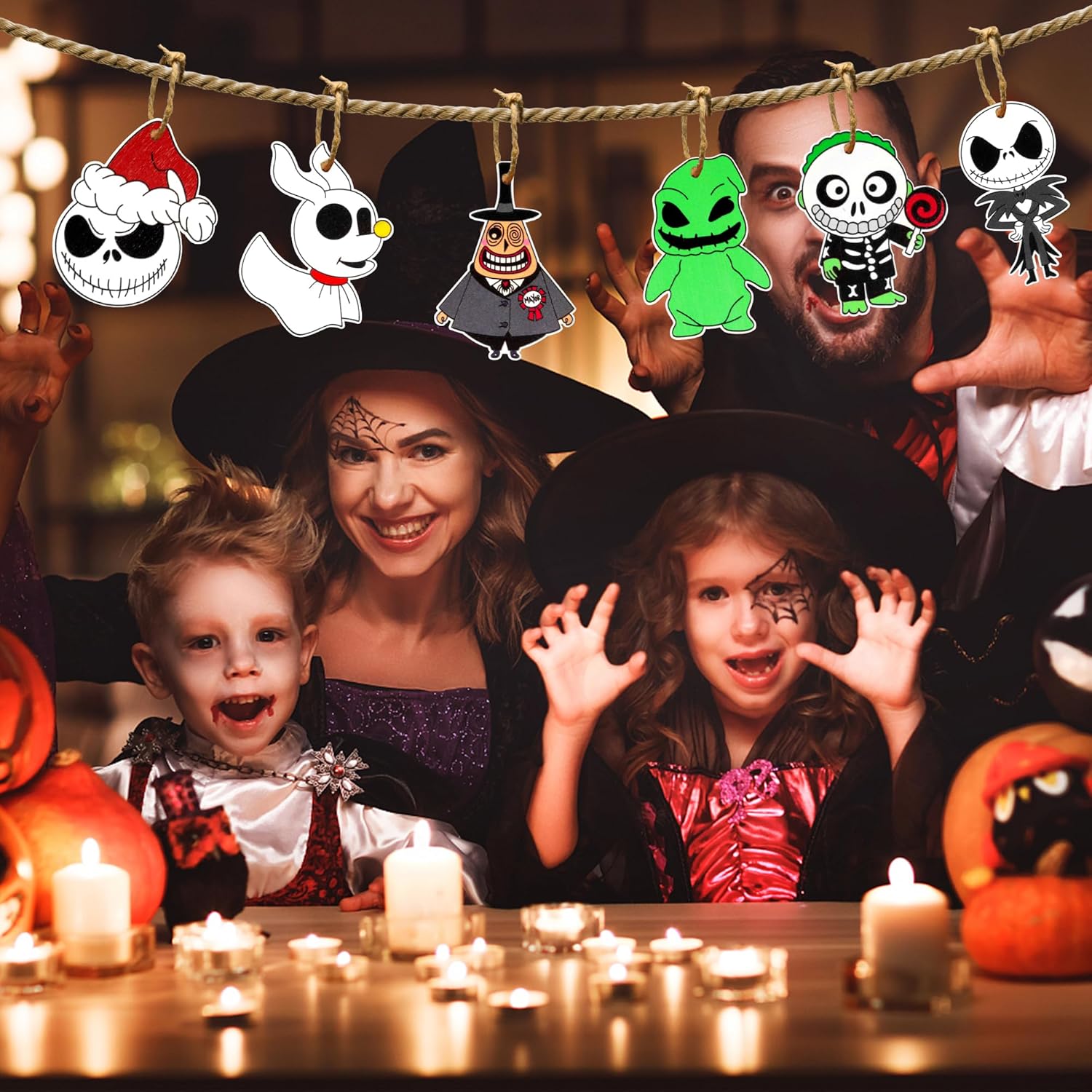 36 PCS Halloween Christmas Night-mare Ornaments Decorations, Halloween Christmas Wooden Hanging Ornaments Set, Night-mare Theme Ornaments for Tree Home Indoor Party Decor