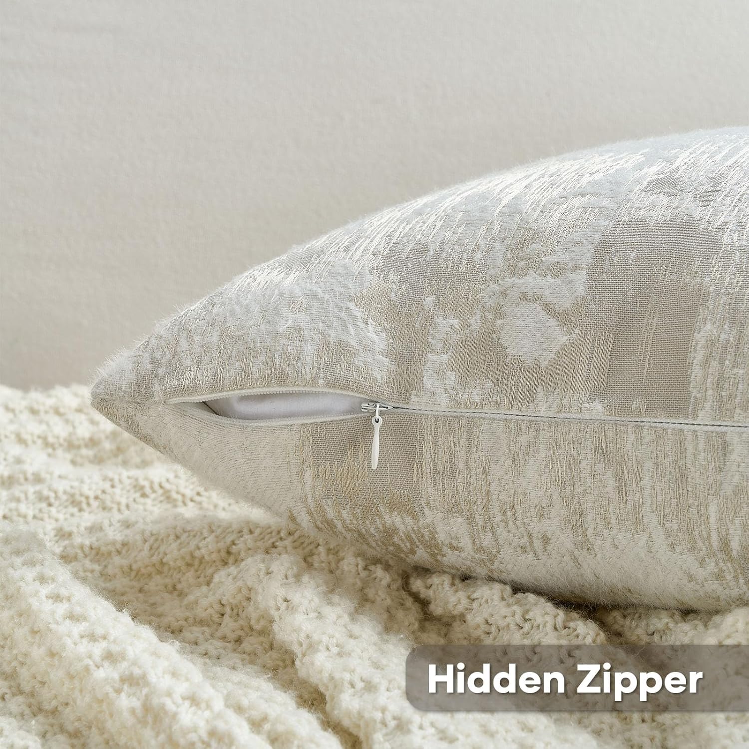 FUTEI Beige White Decorative Throw Pillow Covers 12x20 Inch Set of 2,Soft Faux Cashmere Jacquard - Textured & Cozy Pillow Case,Modern Home Decor for Couch Bed Living Room