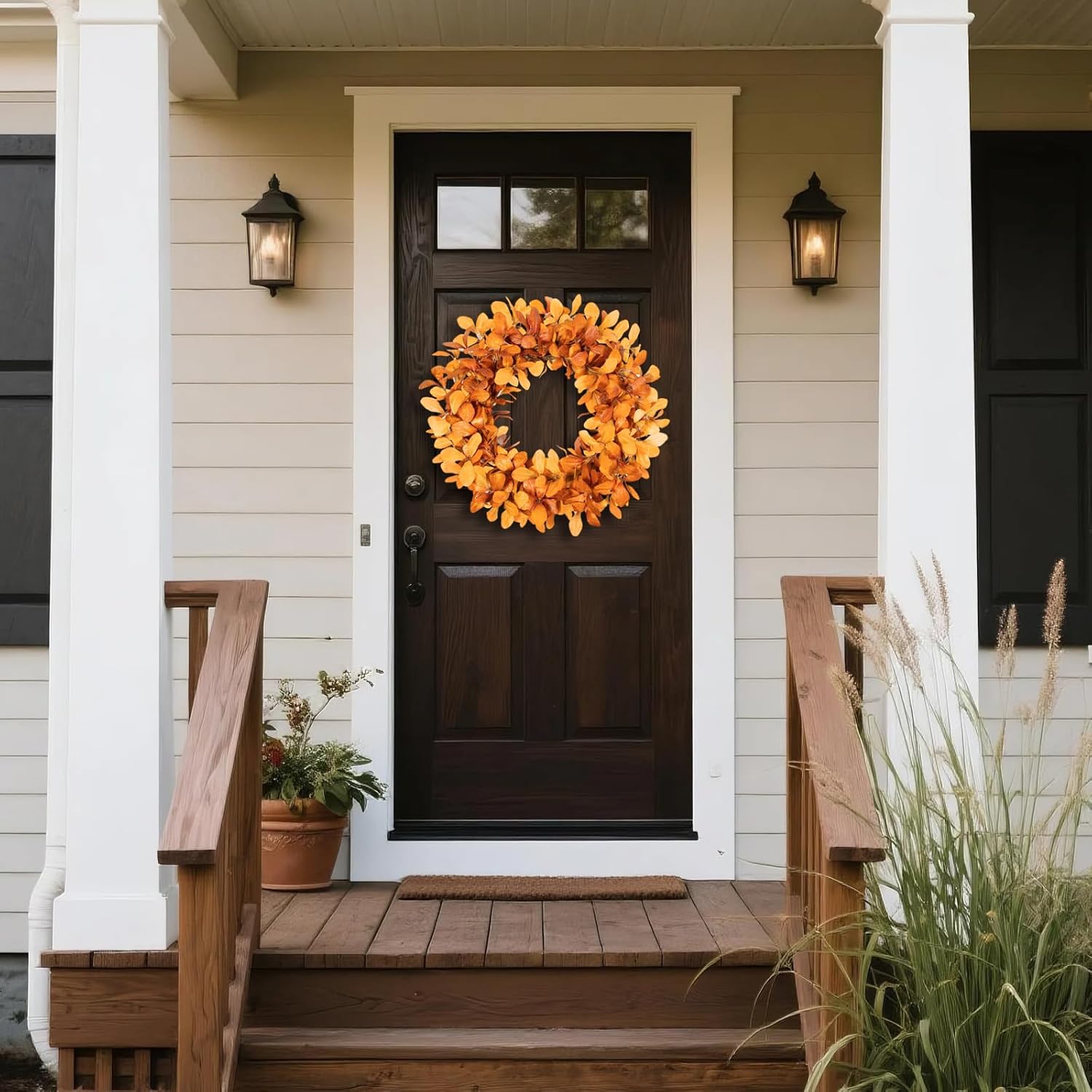 - 3. [Versatile Decoration for All Scenarios] With a 24-inch golden ratio, it is perfectly sized for doors, fences, and courtyards. Designed for American farmhouses and modern minimalist styles, it is an essential decoration for Thanksgiving and can also serve as a Christmas wreath base (with lights for a better effect). It is suitable for indoor entryways, outdoor porches, and dining room background walls.