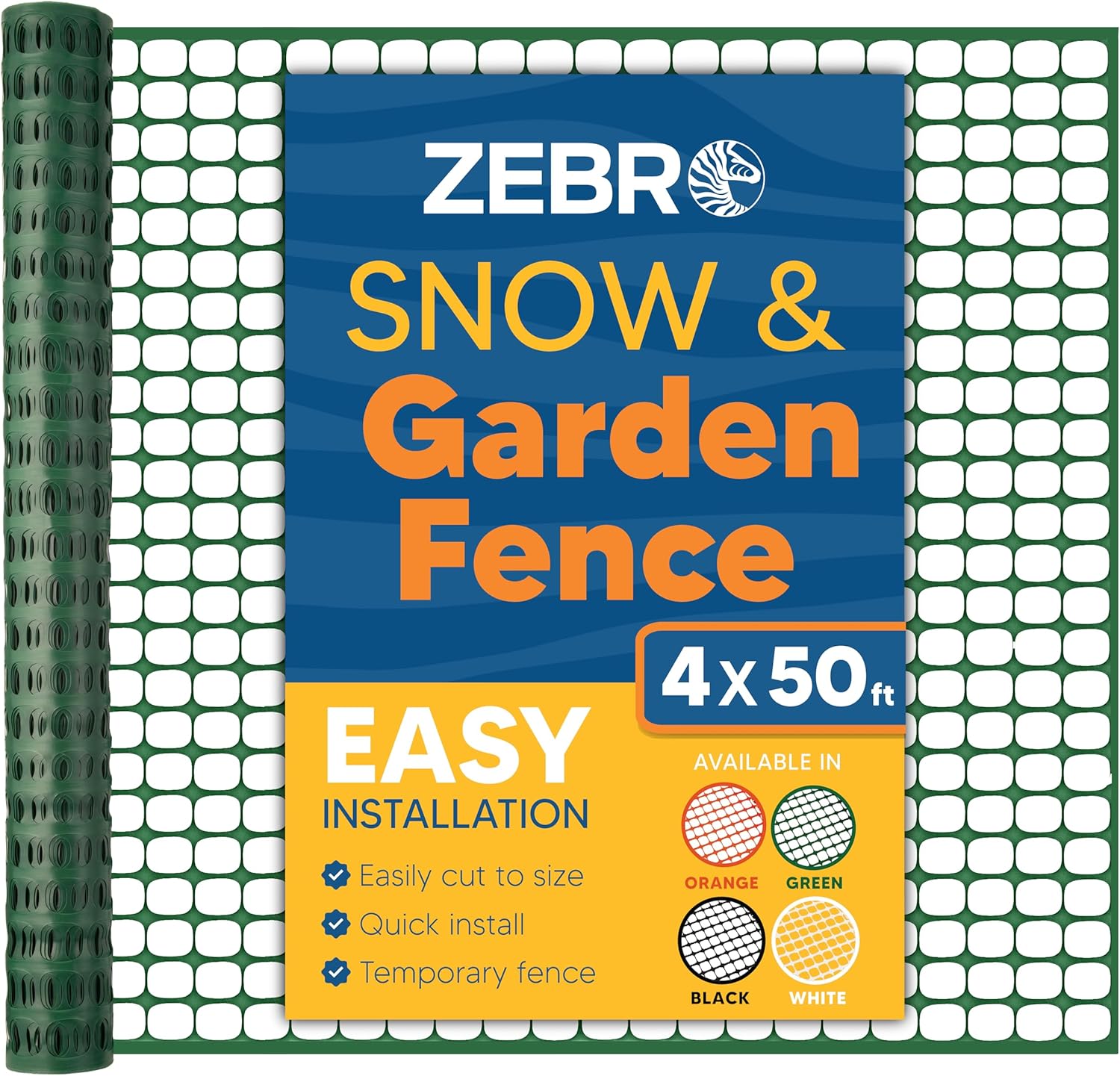 ZEBRO 4' x 50' Green Plastic Garden Fence Roll – Light Duty Mesh Fencing for Temporary Fence, Snow, Garden Netting, Animal Barrier, Agricultural Fencing & Lawn Protection