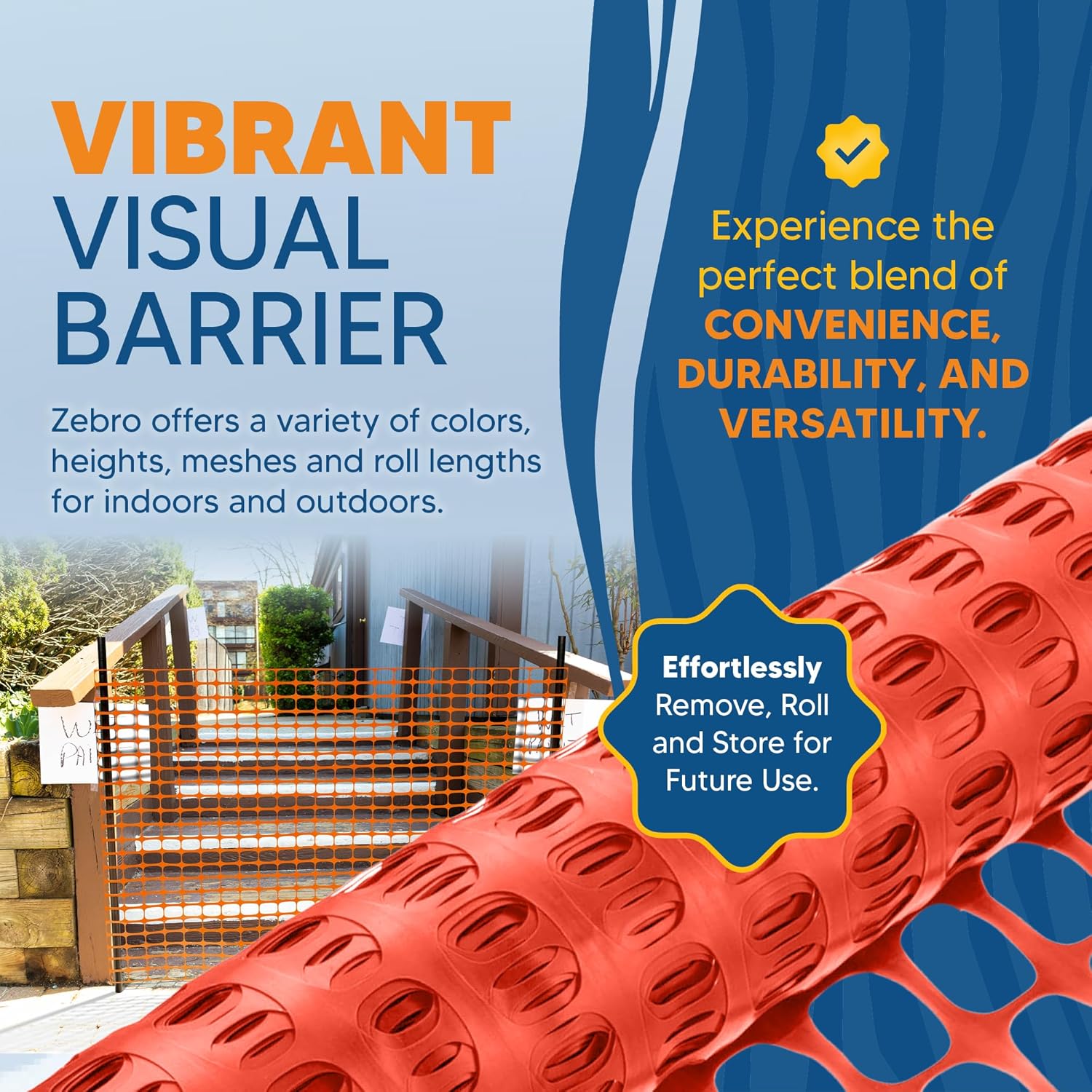 ZEBRO 4' x 100' Orange Plastic Garden Fence Roll – Light Duty Mesh Fencing for Temporary Fence, Snow, Garden Netting, Animal Barrier, Agricultural Fencing & Lawn Protection