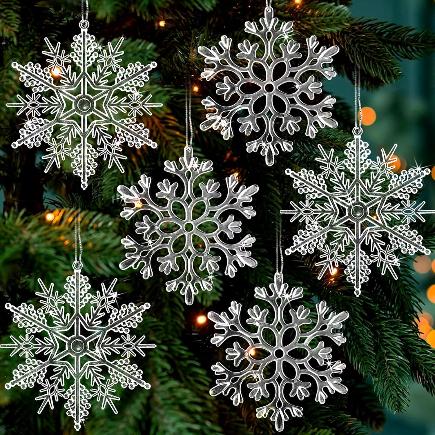 - Premium Snowflakes: These stunning transparent snowflakes are crafted from high-quality plastic with a dazzling shimmer. Their durable design allows for years of reuse while maintaining perfect shape. The glitter is securely adhered and resists flaking, making them an ideal choice for Christmas tree decorations