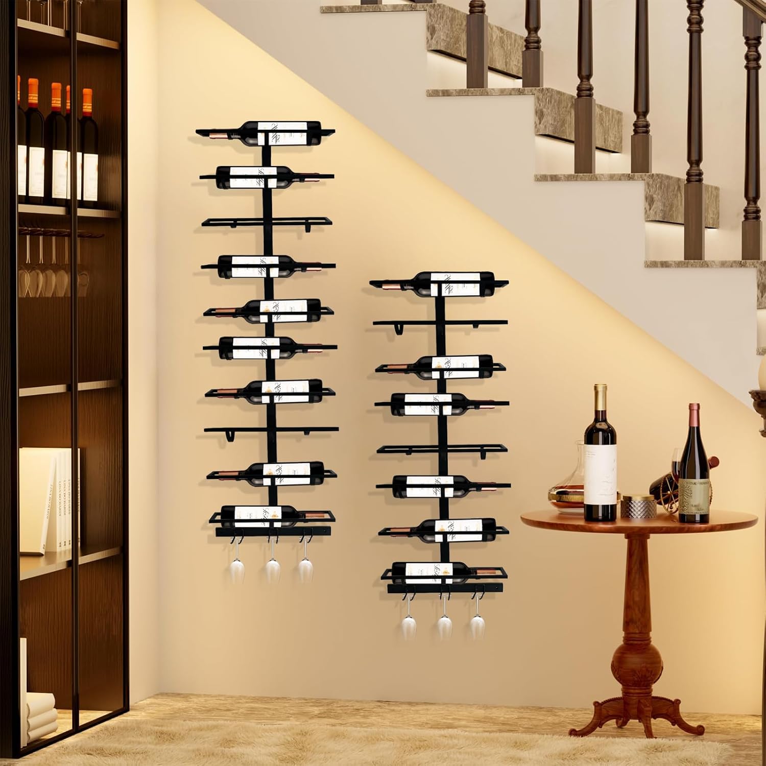 - DIY Wall Mounted Liquor Dispenser: Our 8/10 bottle detachable wine shelf has two ways to store bottles.The first is to take the 8/10 bottle wine stand apart at the top and bottom to get two small wine racks. The second is to combine the 8/10 bottle racks to get the long vineras