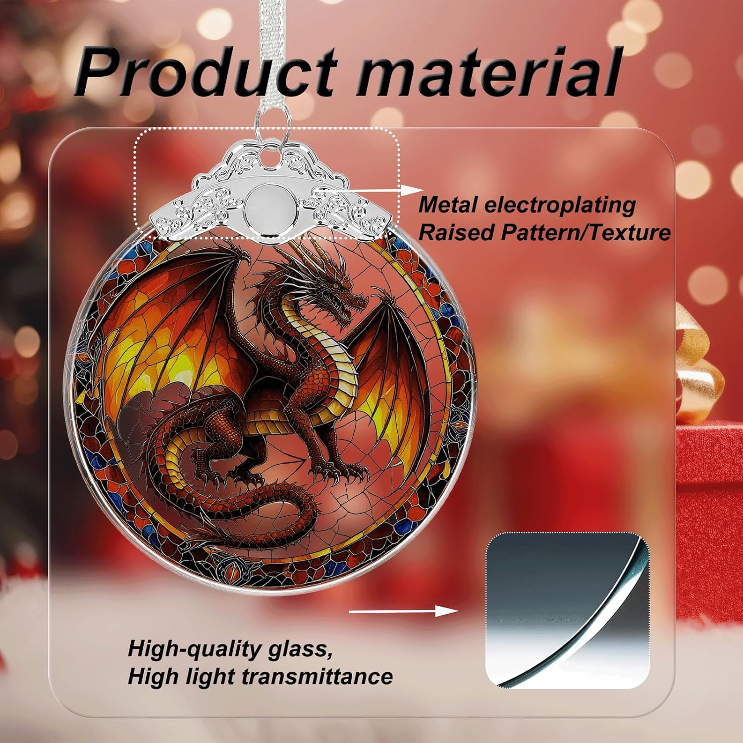 Dragon Stained Glass Christmas Ornament - Hanging Ornaments for Christmas Tree Decorations -Holiday Keepsake Present Exchange Idea