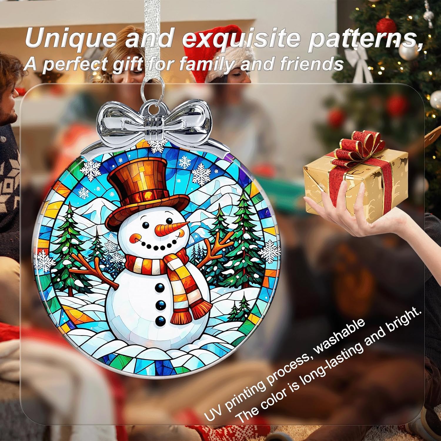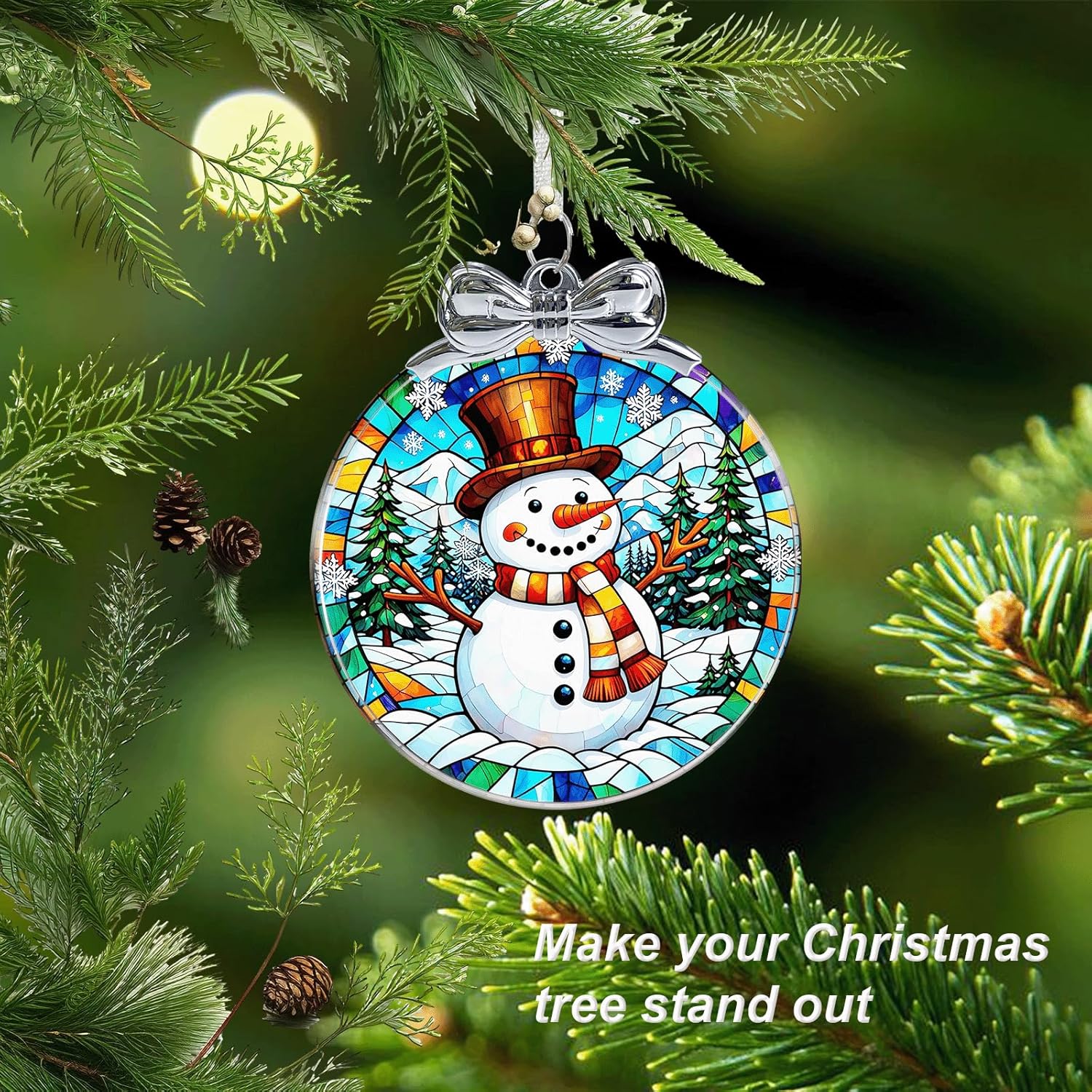 Snowman Stained Glass Christmas Ornament - Hanging Ornaments for Christmas Tree Decorations -Holiday Keepsake Present Exchange Idea