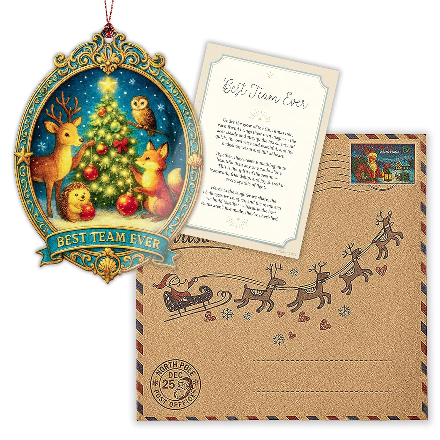 Best Team Ever Ornament – Coworker Gifts | Team Ornament + Employee Appreciation Gift – Office Christmas Ornament 2025 – Suncatcher Effect Stained Glass Window Hanging – Car Hanging Decoration