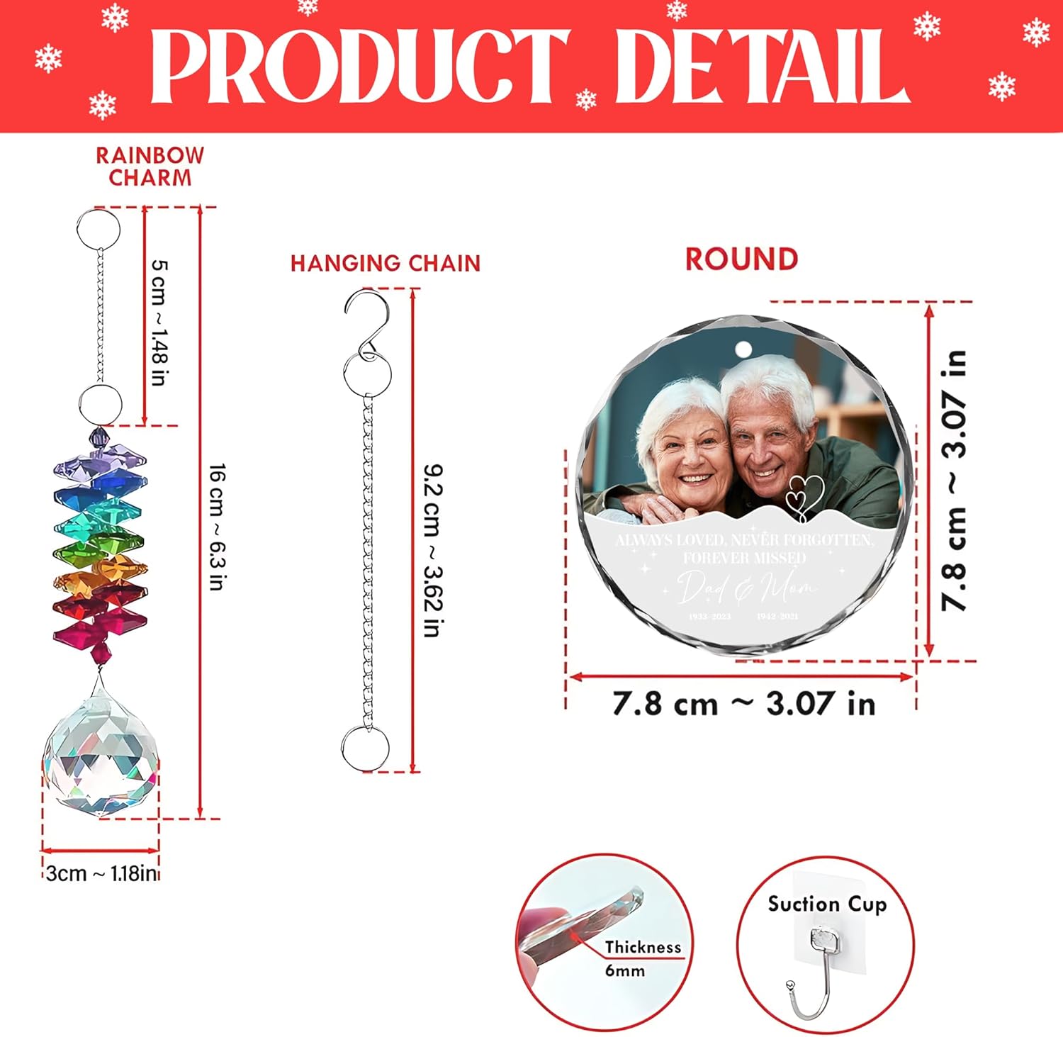 Personalized Memorial Ornament for Dad & Mom β Custom Photo Suncatcher with Names & Dates β Always Loved Never Forgotten β Loss of Parents Christmas Ornament β Remembrance Gift for Family