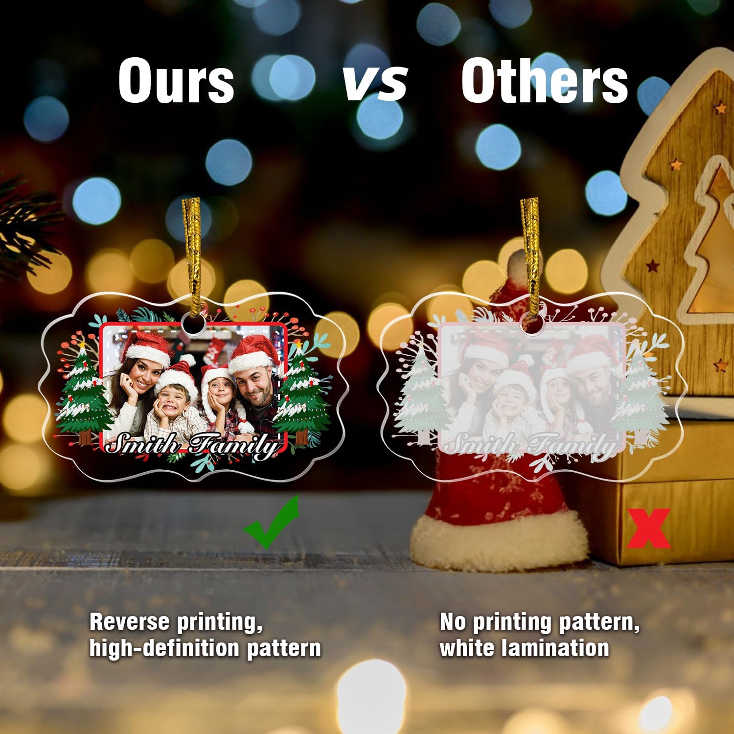 - 🎄Personalized Crystal Photo Ornaments --- Let your special memories live forever! You can add photo of yourself with your family, friends, or anyone close to you, along with any text you desire, to the crystal pendant, and we will customize it specifically for you.