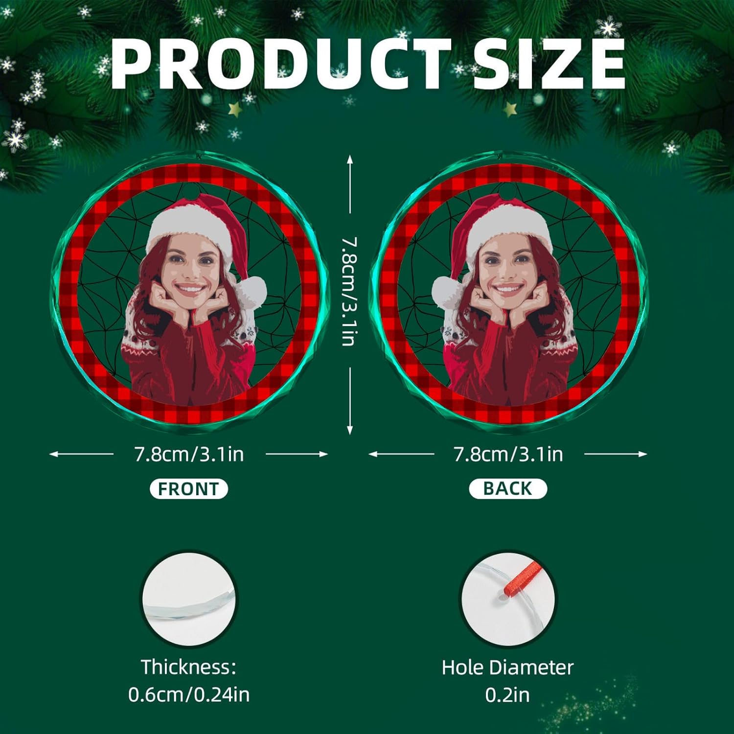 - Eye-Catching Custom Christmas Glass Ornament --- Delicate Christmas elements like trees, wreaths, snowflakes, and plaid patterns, combined with your photo, make this glass keepsake both festive and sentimental—perfect for the holiday season.