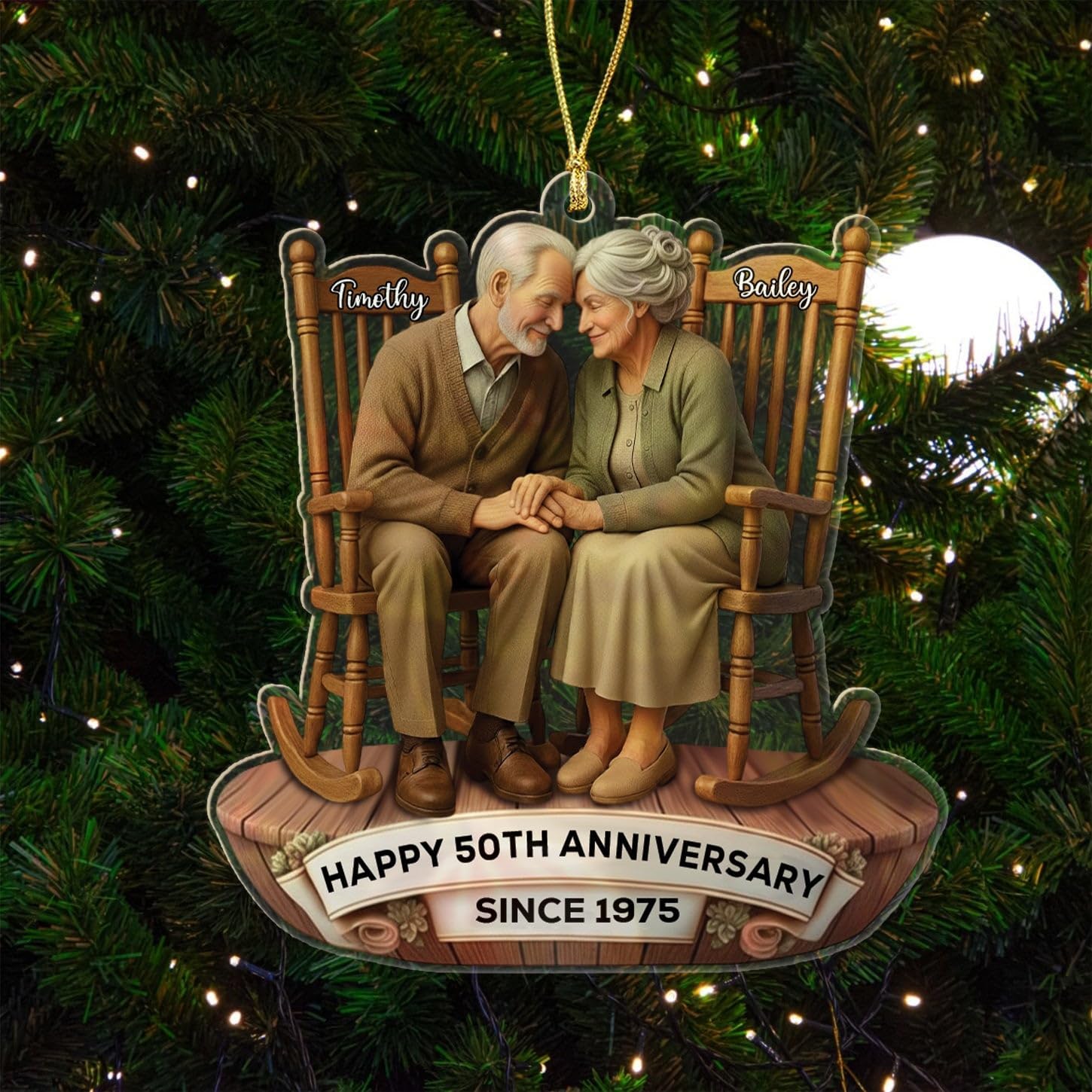 - PERSONALIZED CHRISTMAS ORNAMENTS: This "50th Anniversary Old Couple Sitting On Rocking Chairs " custom ornament is specially designed for an Old Couple, Husband and Wife, Boyfriend and Girlfriend, Him and Her, Bride and Groom, Mr & Mrs, Newlyweds, Dad Mom, Parents, Grandparents. Click on the " Customize Now " button to make your ornament special by customizing it to your liking.