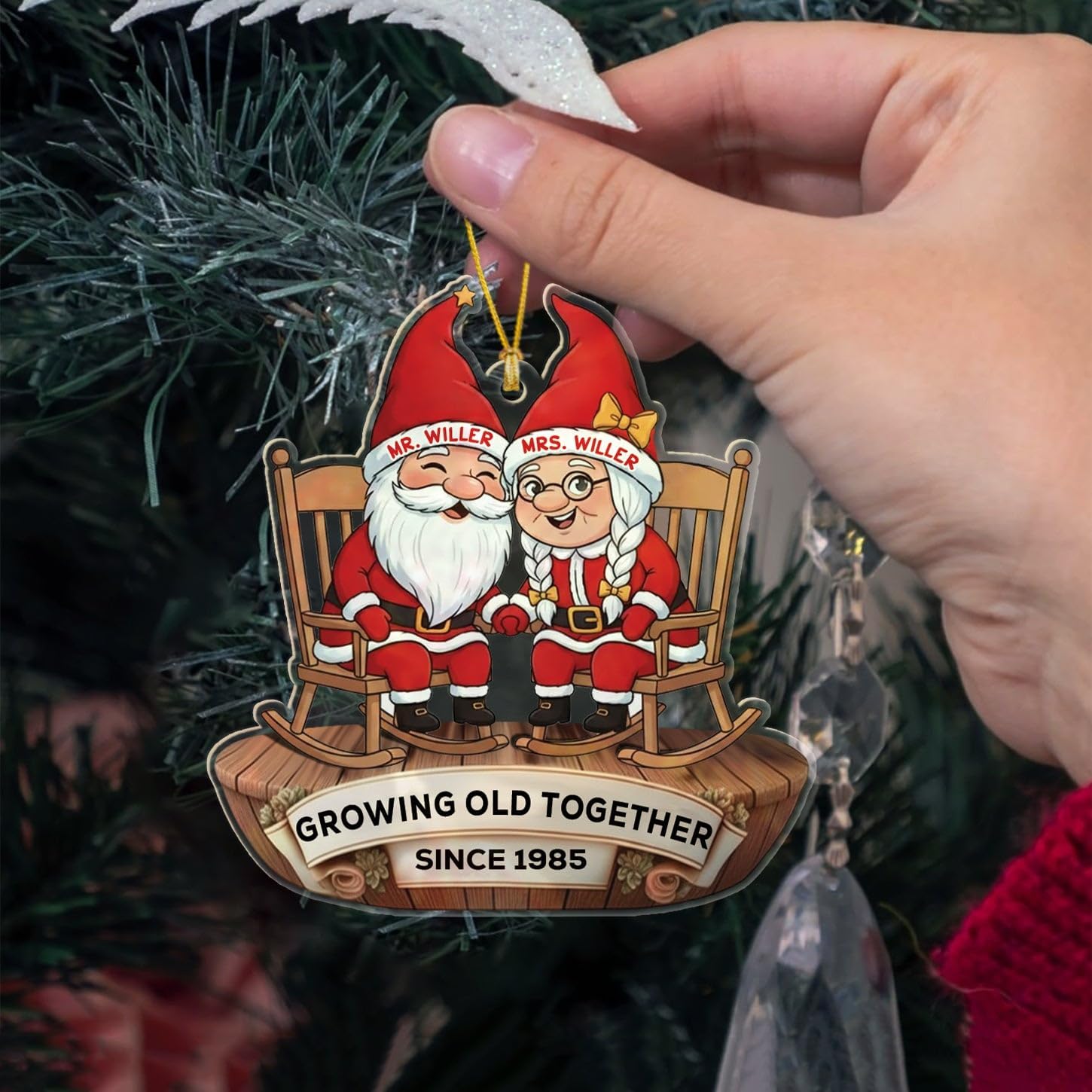 - PERSONALIZED CHRISTMAS ORNAMENTS: This "Old Couple Gnome Sitting On Rocking Chairs Growing Old Together Since" custom ornament is specially designed for an Old Couple, Husband and Wife, Boyfriend and Girlfriend, Him and Her, Bride and Groom, Mr & Mrs, Newlyweds, Dad Mom, Parents, Grandparents. Click on the " Customize Now " button to make your ornament special by customizing it to your liking.